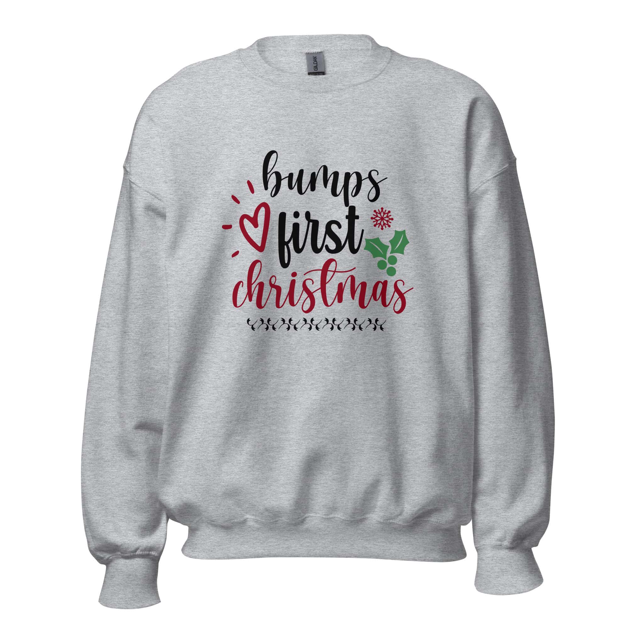 - 🤰 Adorable Maternity Design – Festive “Bump’s First Christmas” artwork with cute holiday accents.