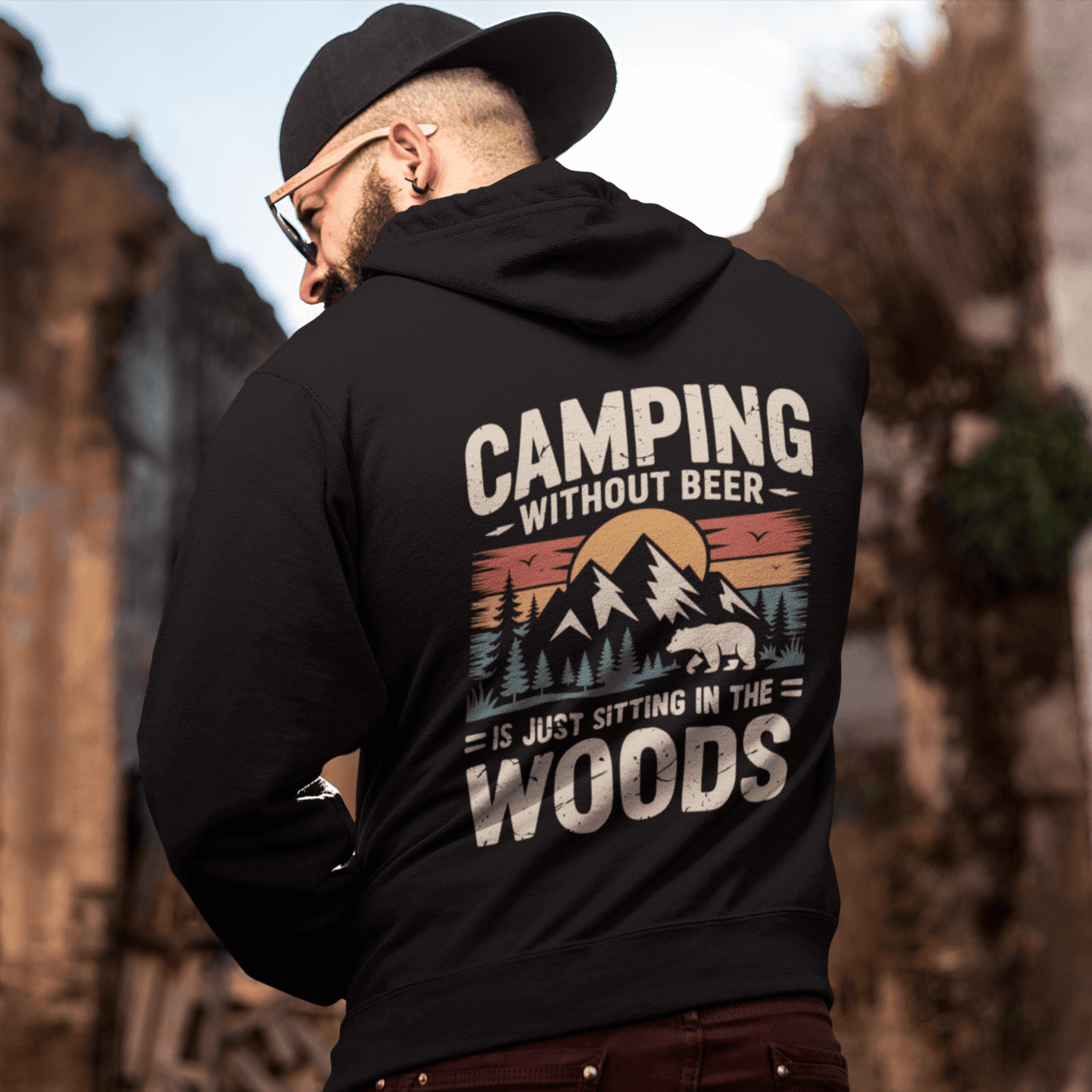 Get ready for the great outdoors with a hoodie that speaks the truth! Whether you’re sitting by the fire or hiking through the woods, this design keeps you cozy while showing your fun side. Perfect for anyone who loves camping, adventure, and a cold beer under the stars.