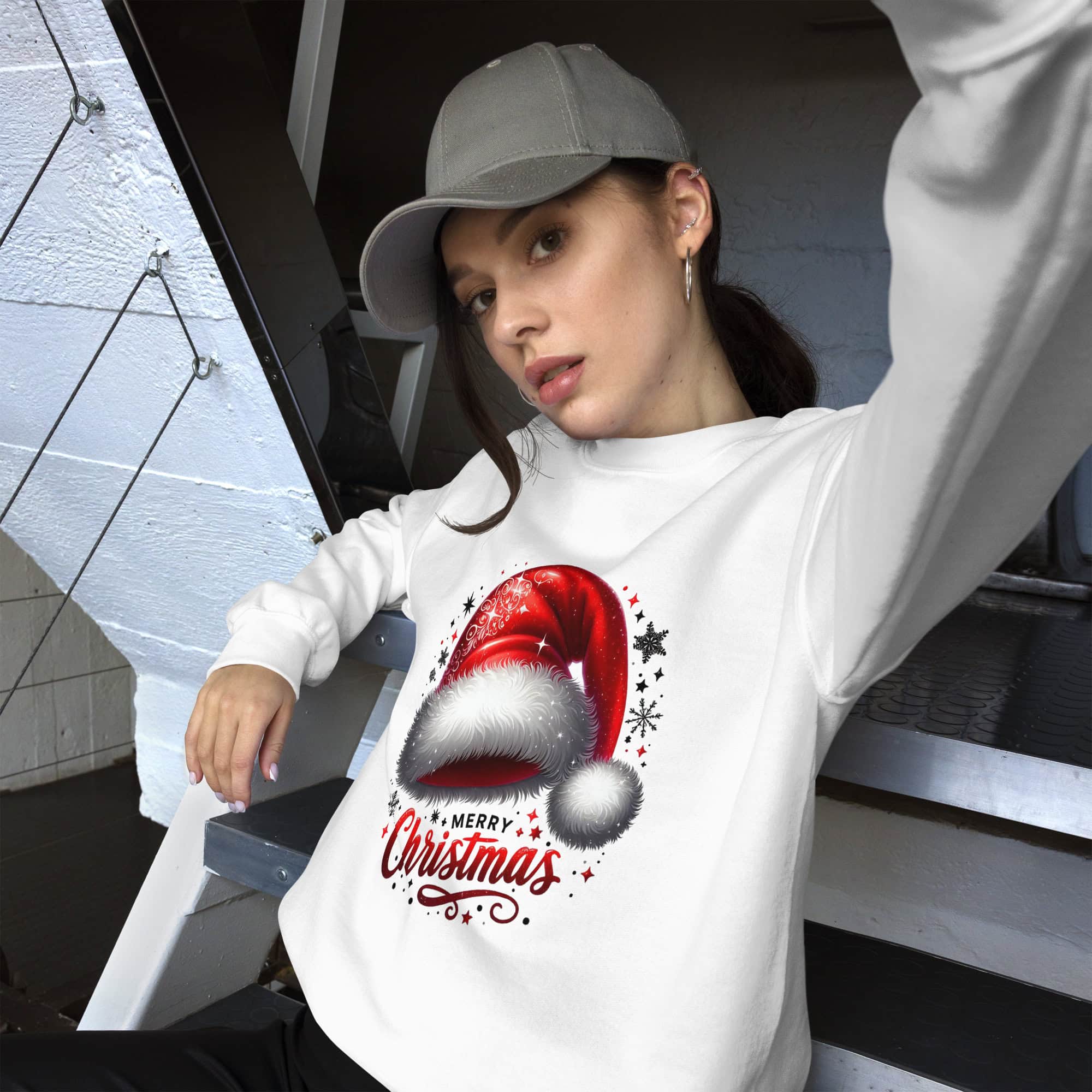 Merry Christmas Santa Hat Sweatshirt | Cozy Holiday DTFlex Print