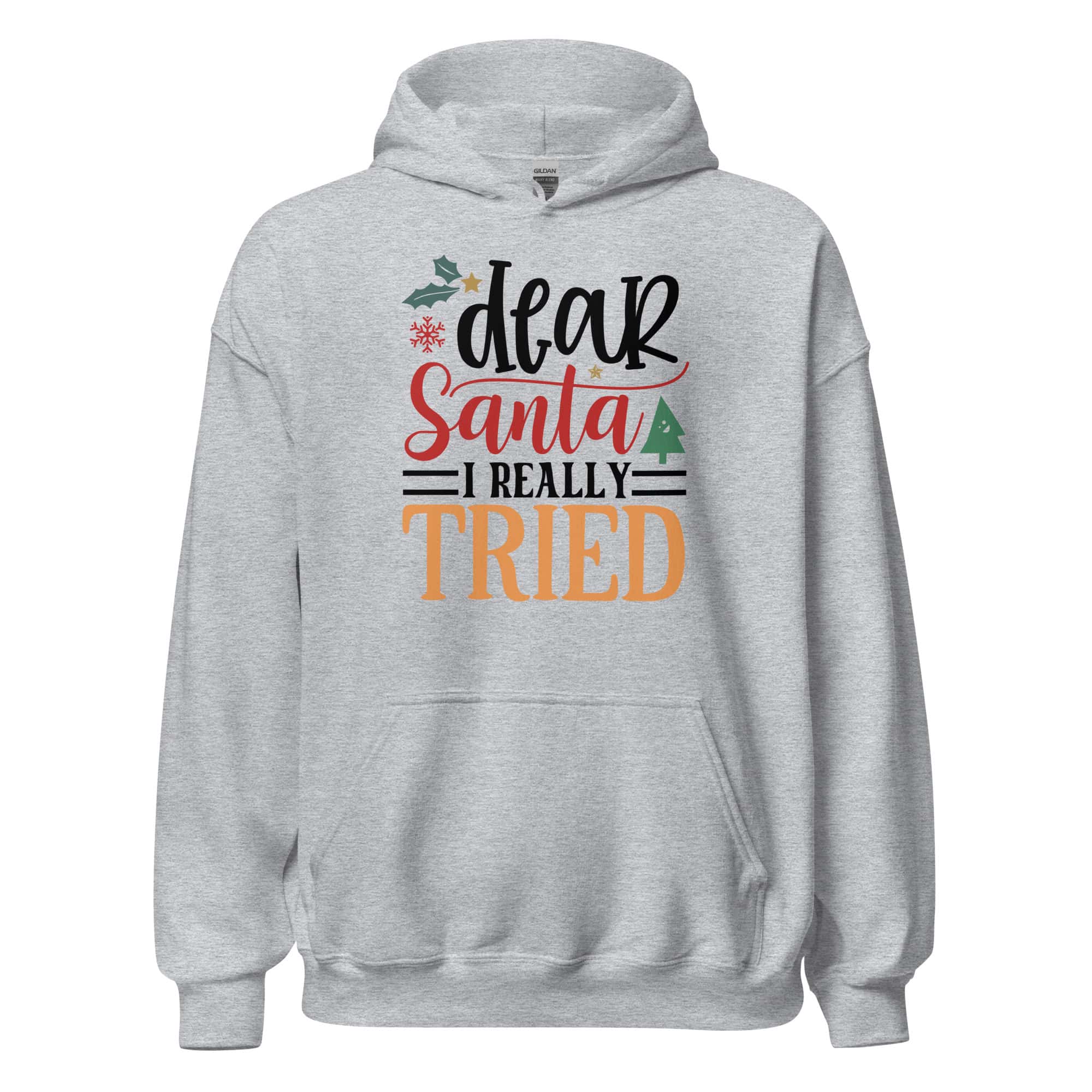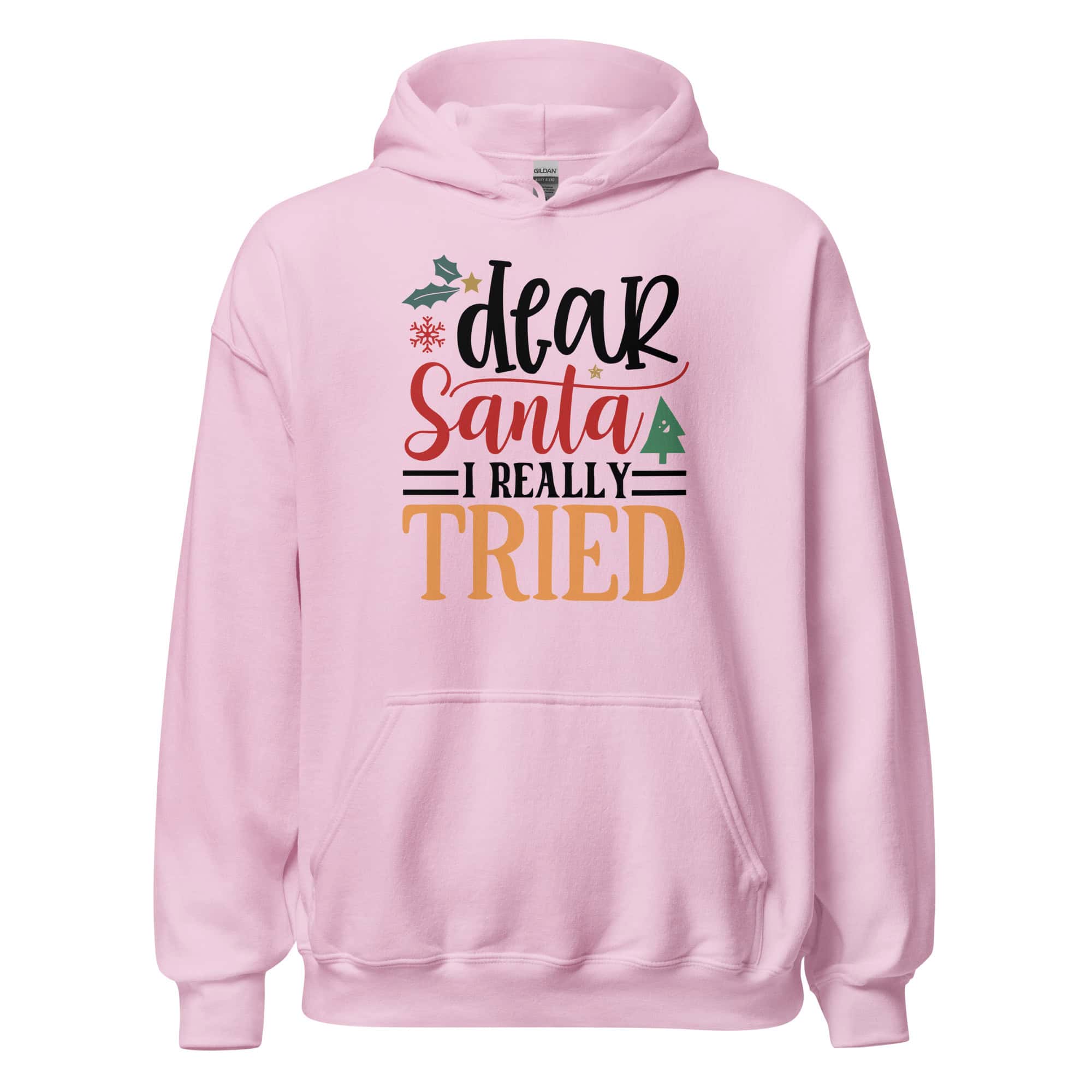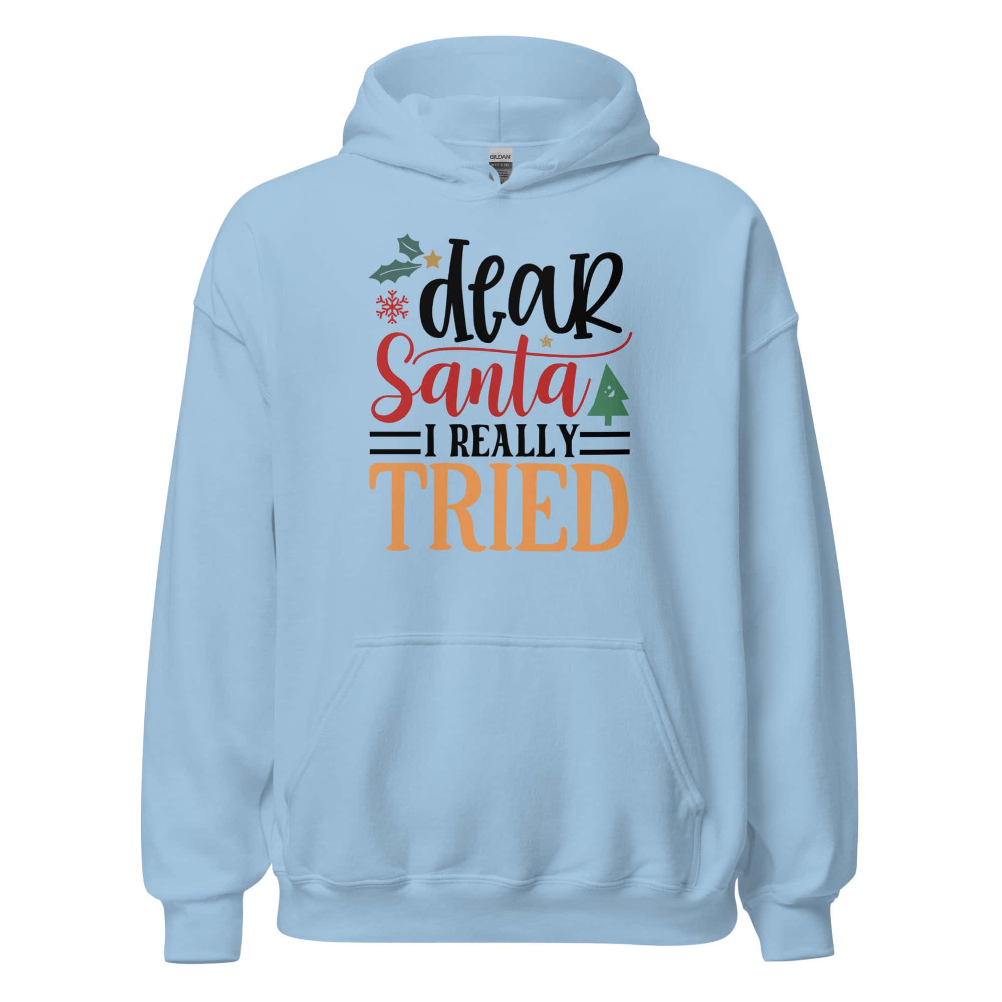 Add some festive humor to your holiday outfits with this cozy premium hoodie. Designed for comfort and warmth, it features the playful “Dear Santa, I Really Tried” artwork—perfect for Christmas parties, gifting, and staying snug all season long.