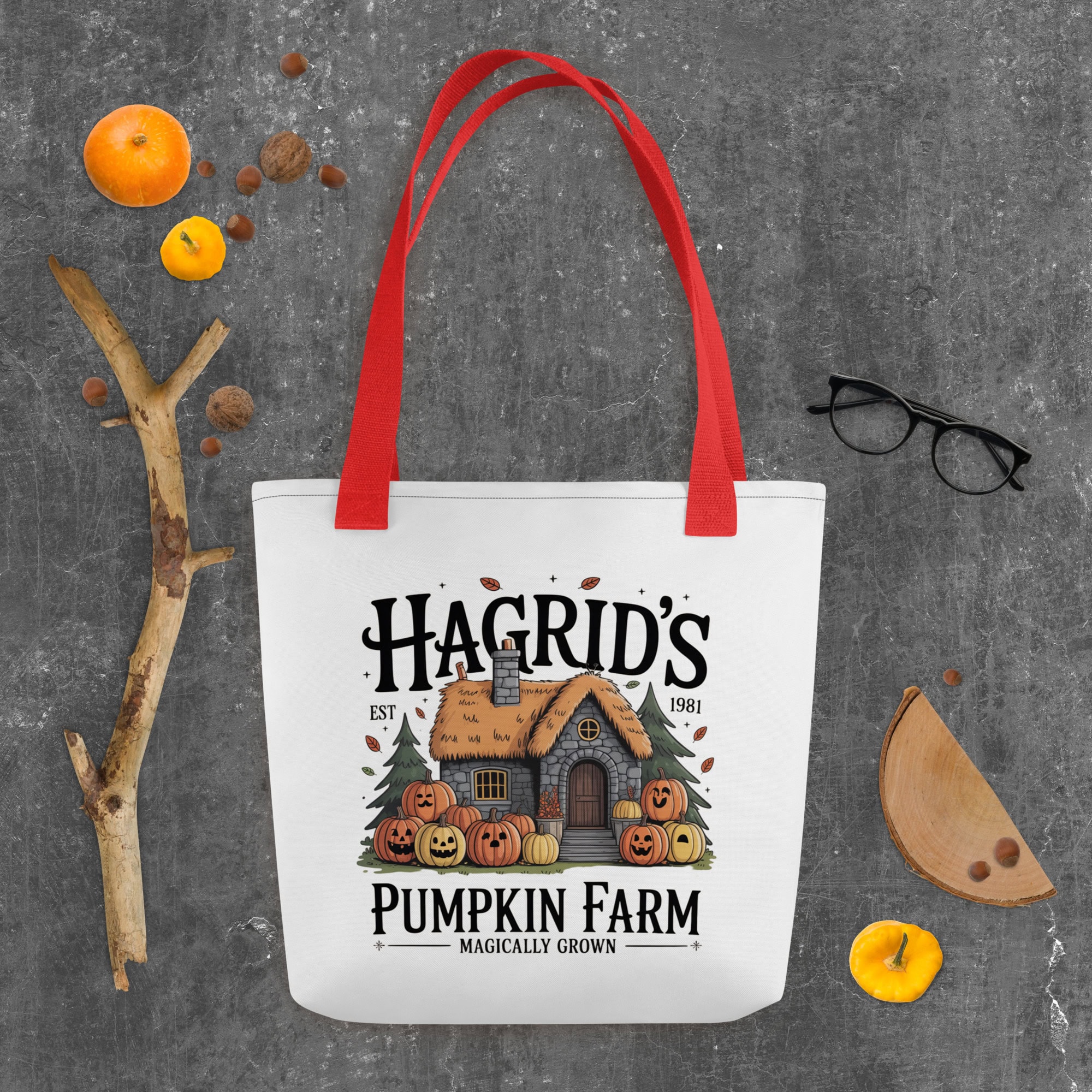 Step into a world of magic and autumn charm with this Hagrid’s Pumpkin Farm Tote Bag.