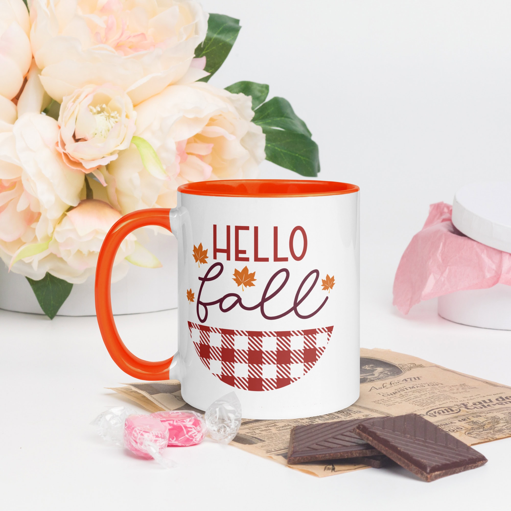 Add a warm touch of autumn to your coffee or tea ritual with this Hello Fall Color Inside Mug đ. Featuring a cheerful plaid pattern, maple leaves, and the cozy âHello Fallâ message, itâs the perfect companion for crisp mornings and cozy evenings. The colored interior and handle make it extra stylishâideal for fall lovers, pumpkin spice fans, or anyone who enjoys a seasonal vibe in every sip.