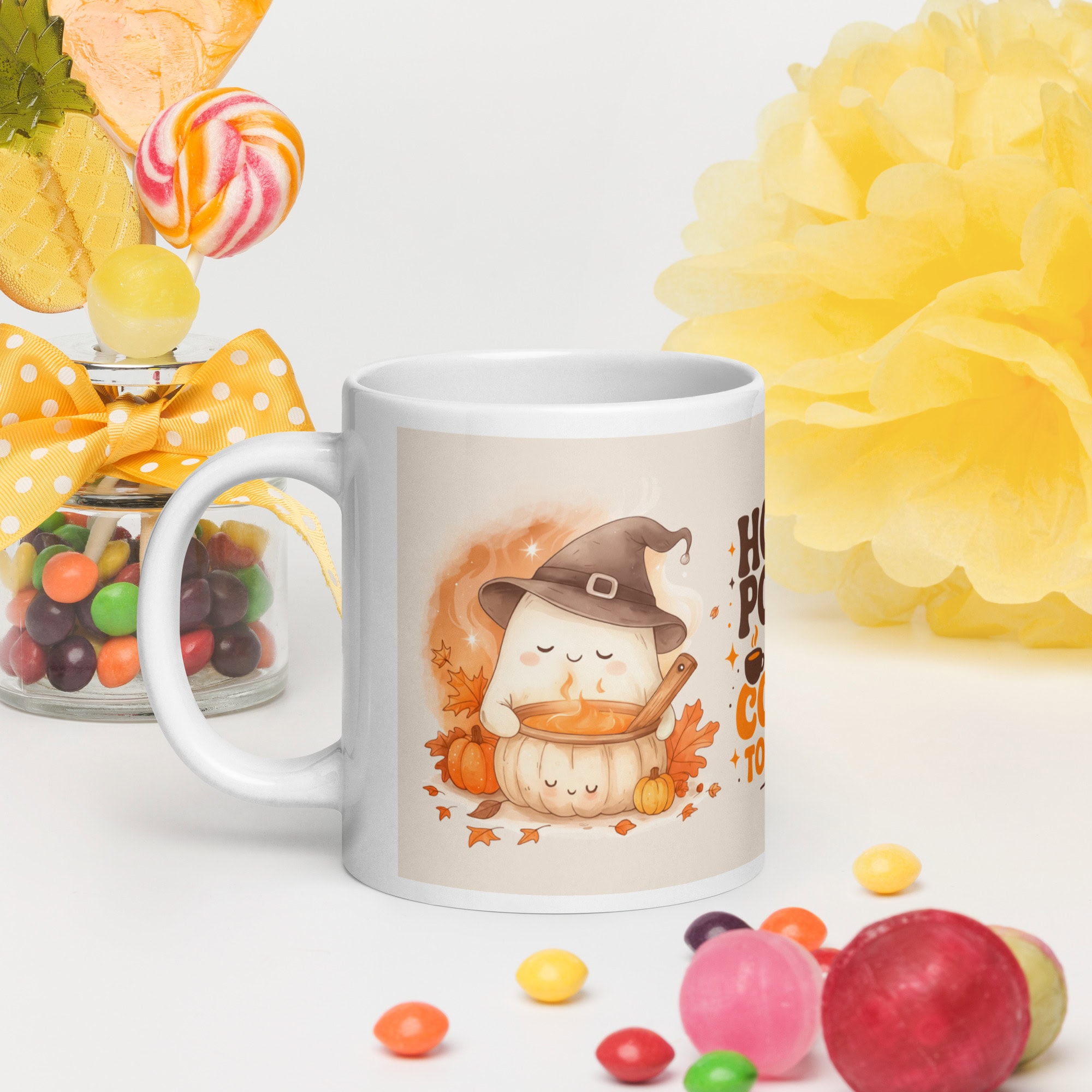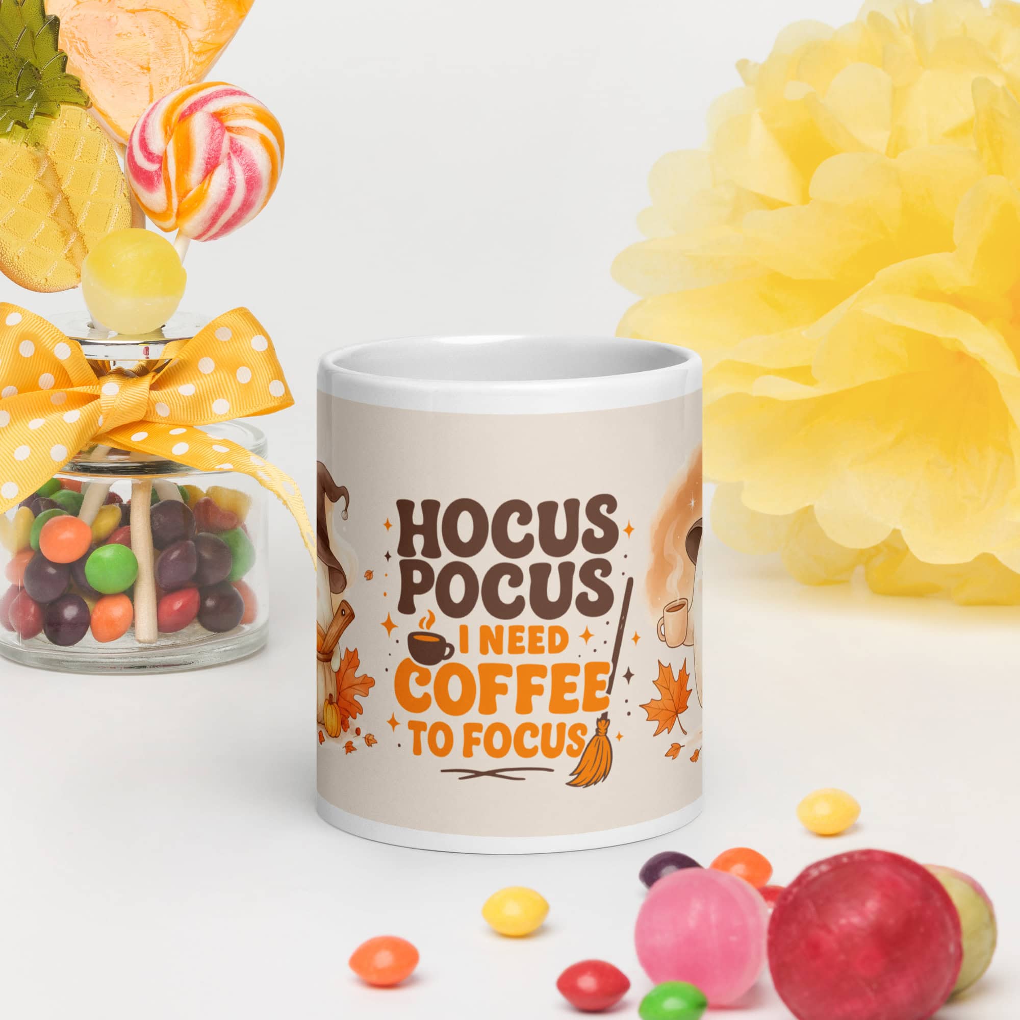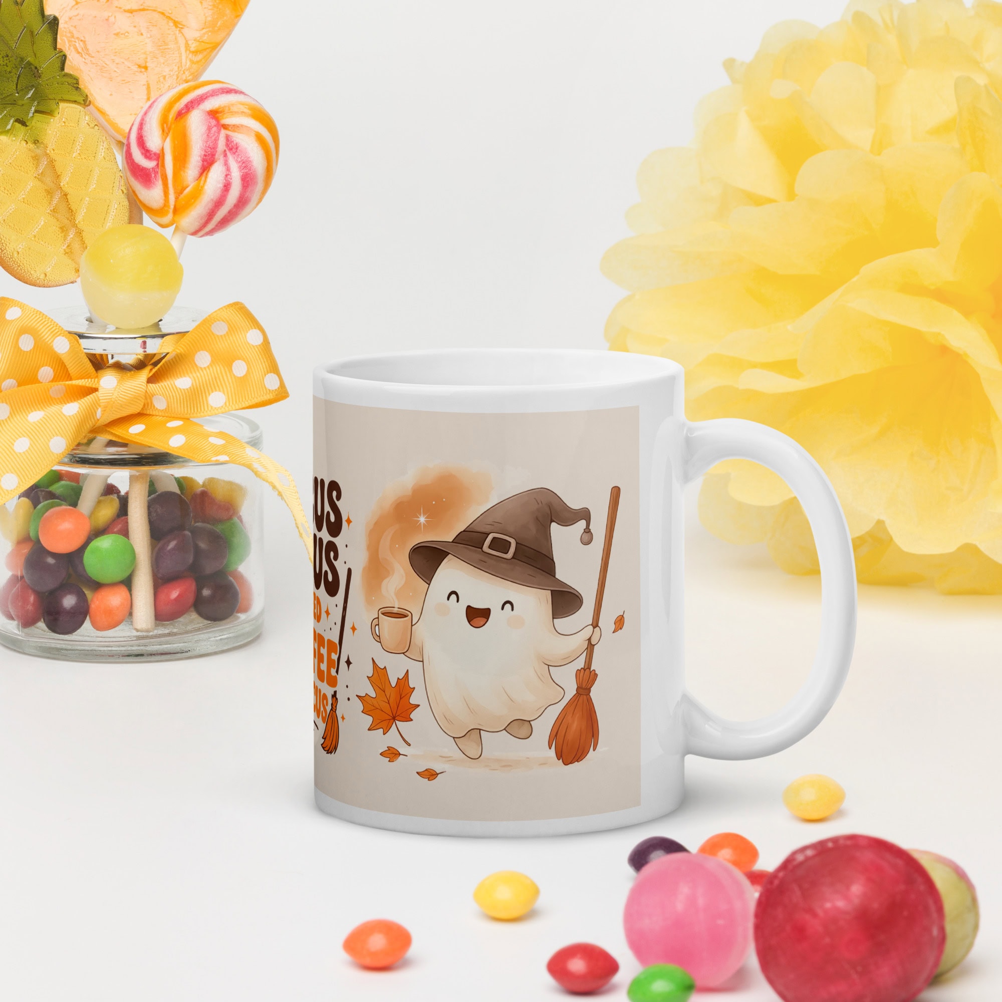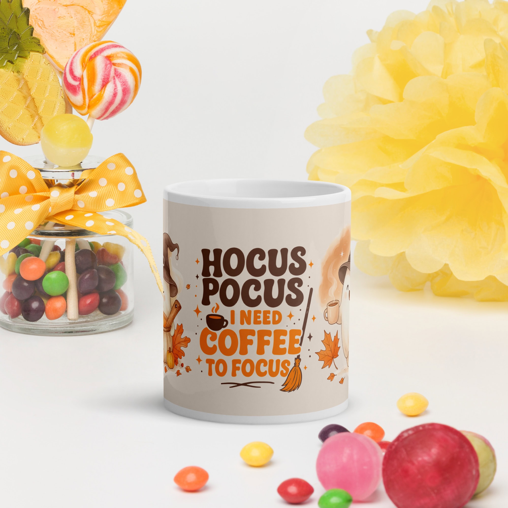 The Hocus Pocus “I Need Coffee to Focus” Mug is the perfect blend of Halloween charm and coffee humor — featuring an adorable ghost in a witch hat surrounded by pumpkins and autumn leaves. Whether for your morning coffee or your pumpkin spice latte, this mug adds a cozy seasonal vibe to your kitchen or desk.