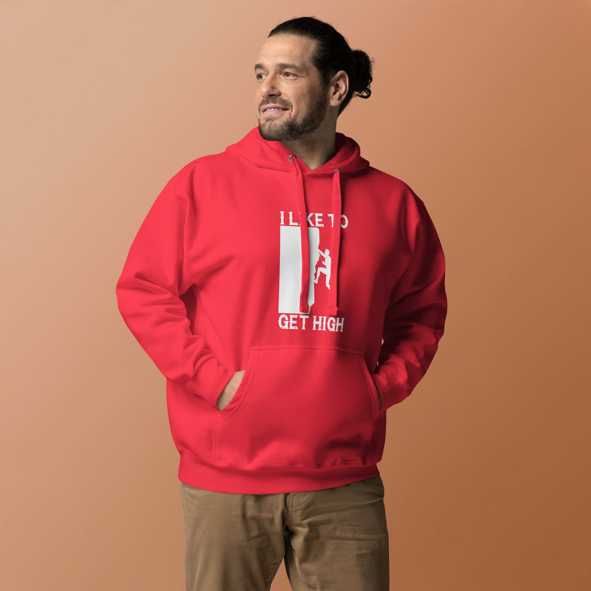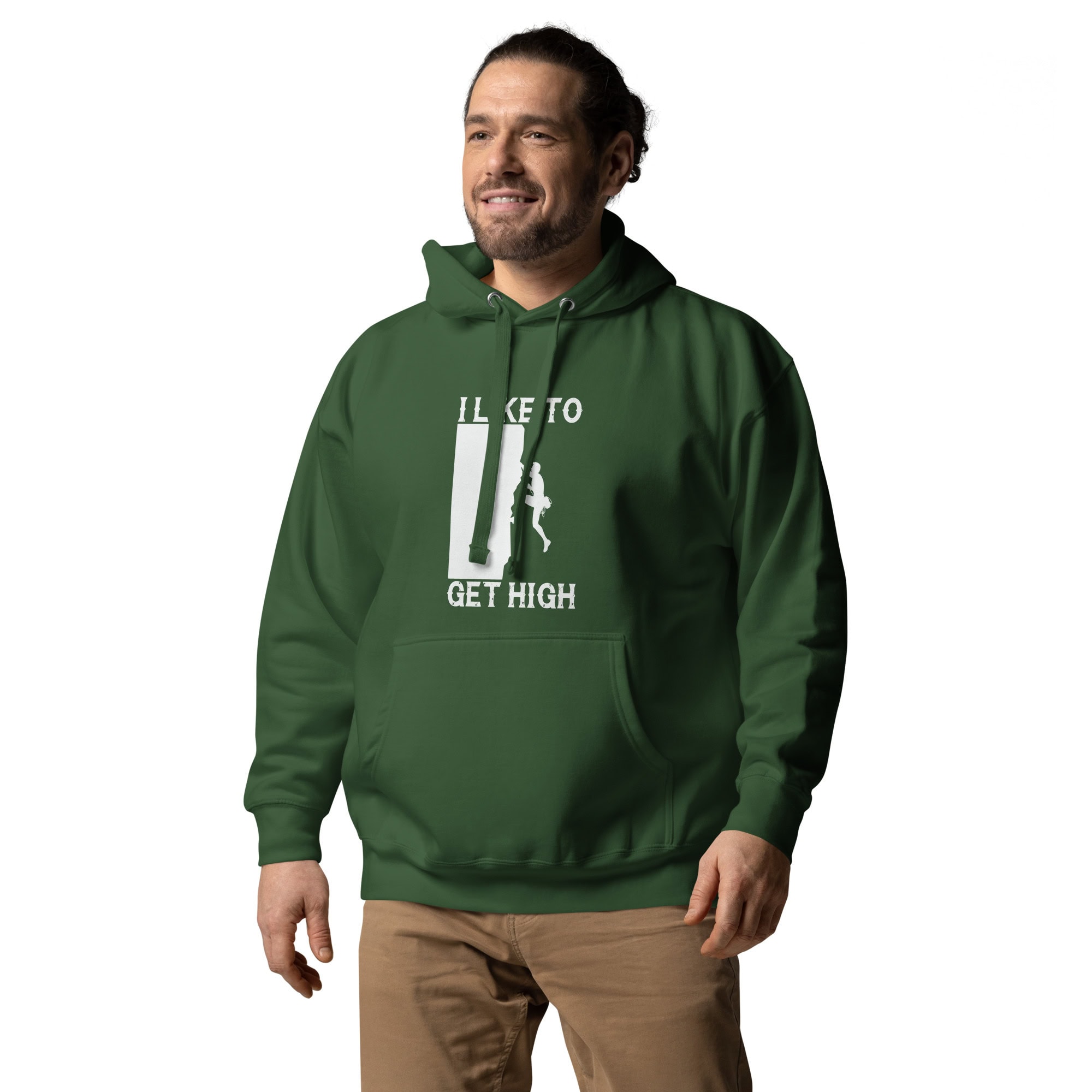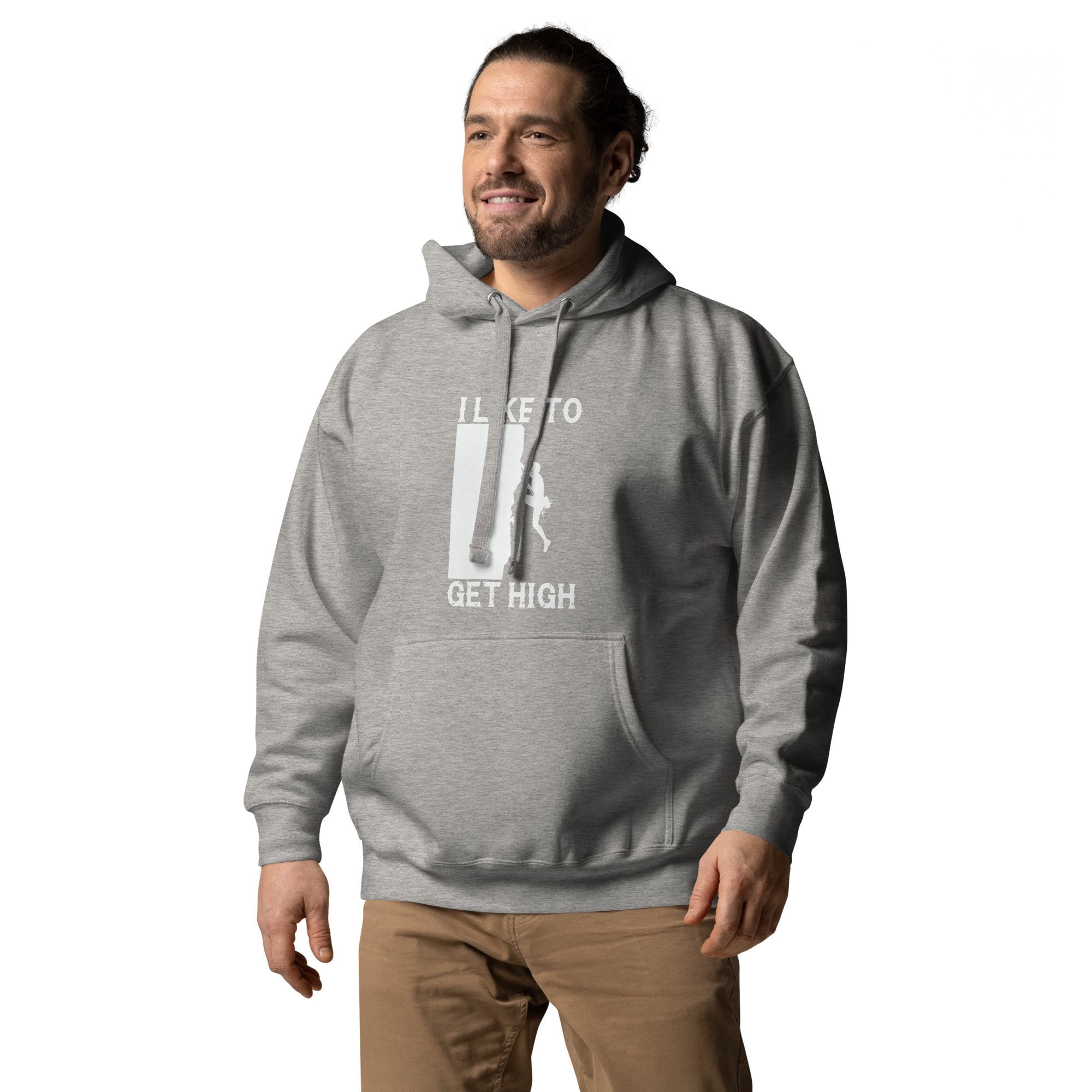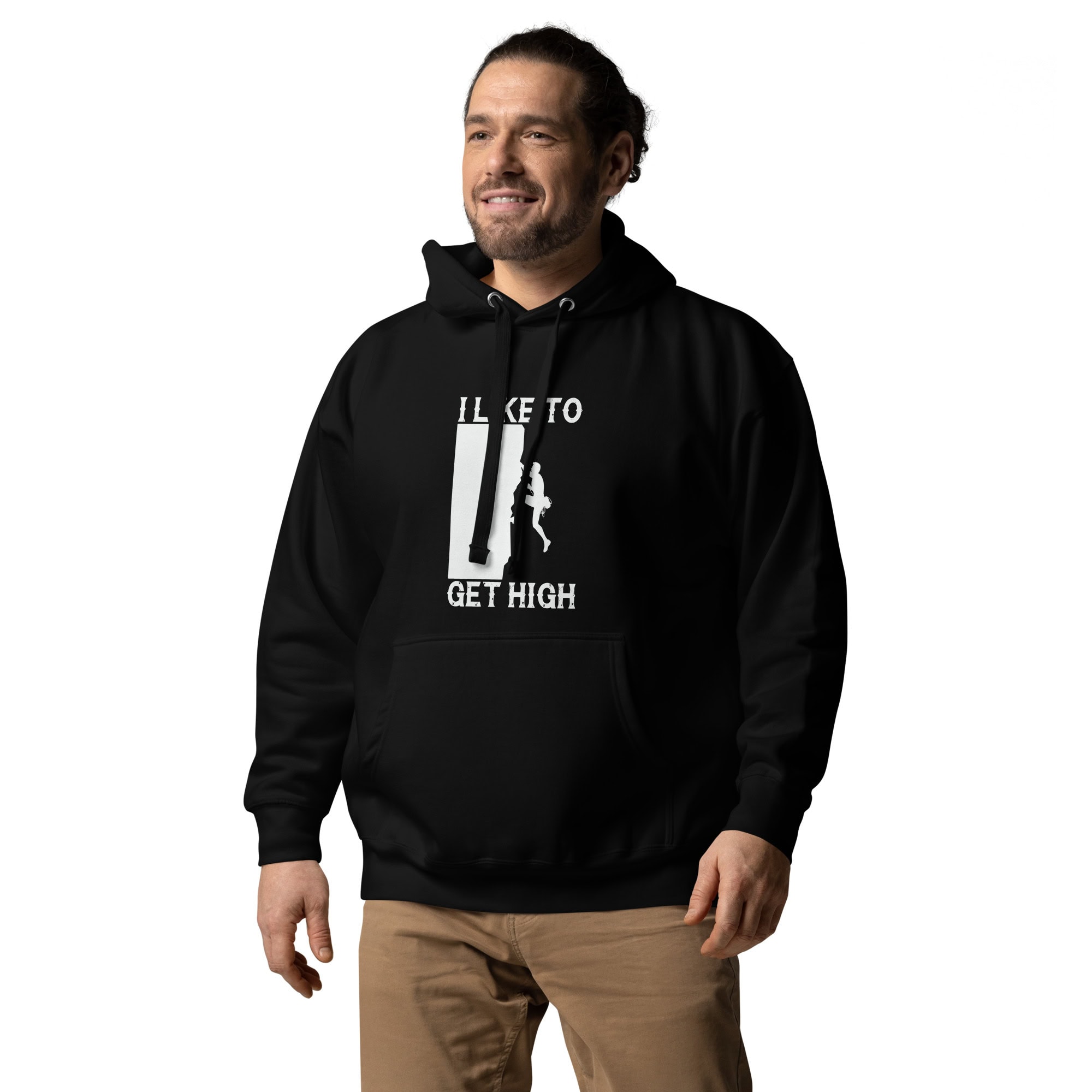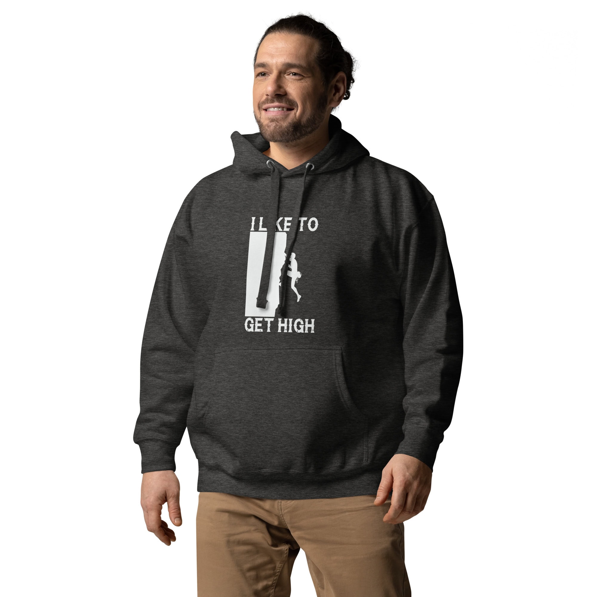 This “I Like To Get High” unisex hoodie celebrates the spirit of rock climbing with a playful twist — perfect for climbers, adventurers, and outdoor lovers.