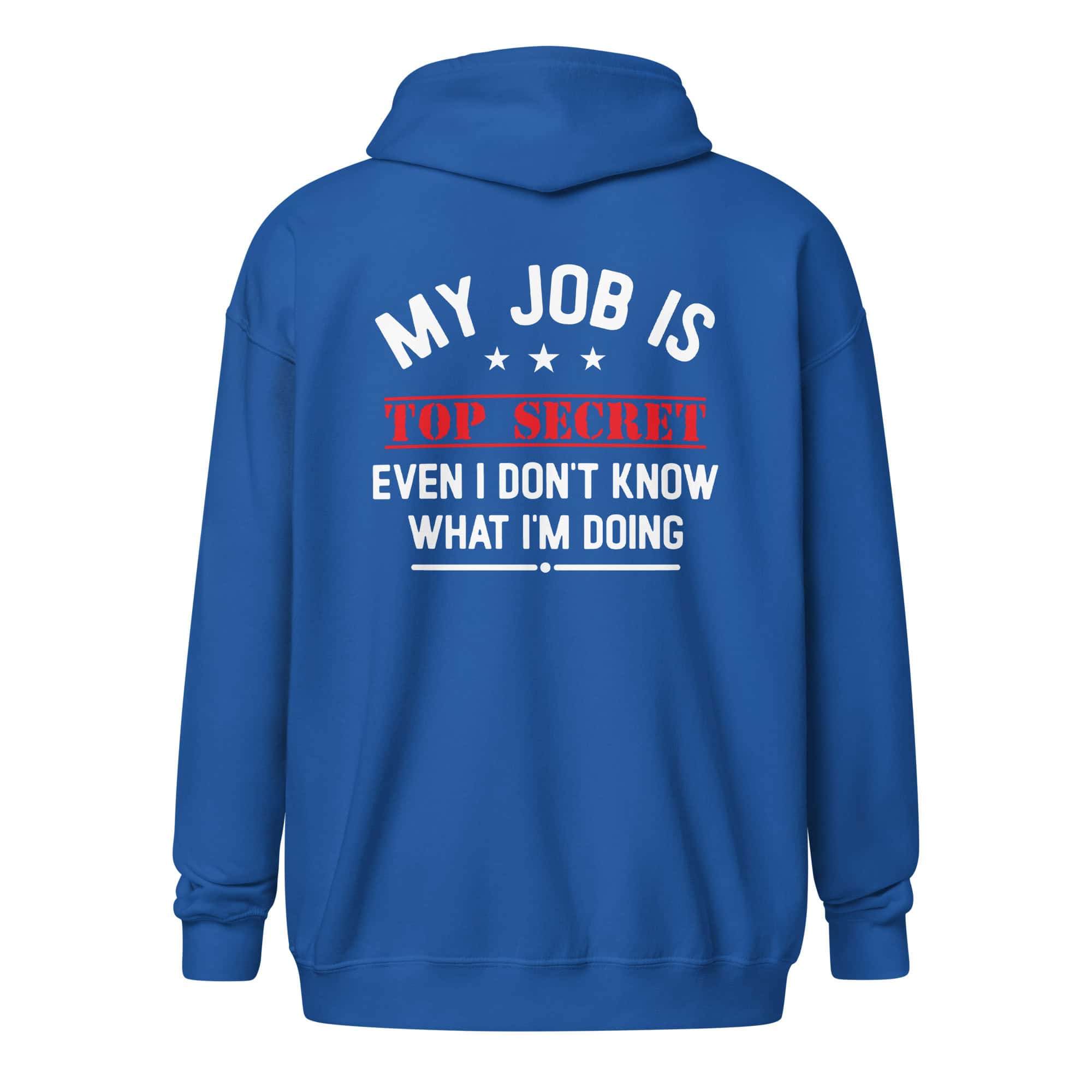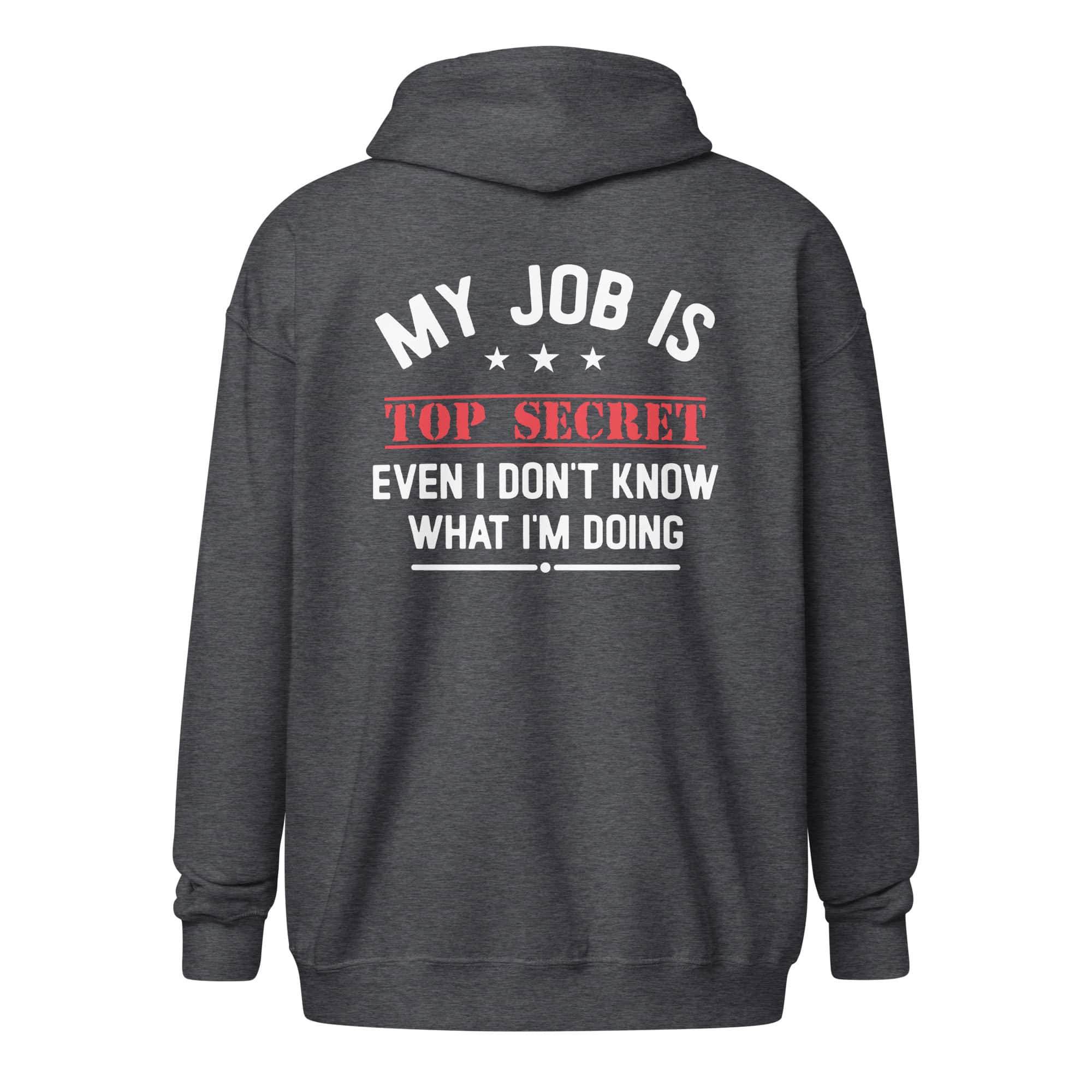 My Job Is Top Secret Zip Hoodie | Funny Work Quote Sweatshirt