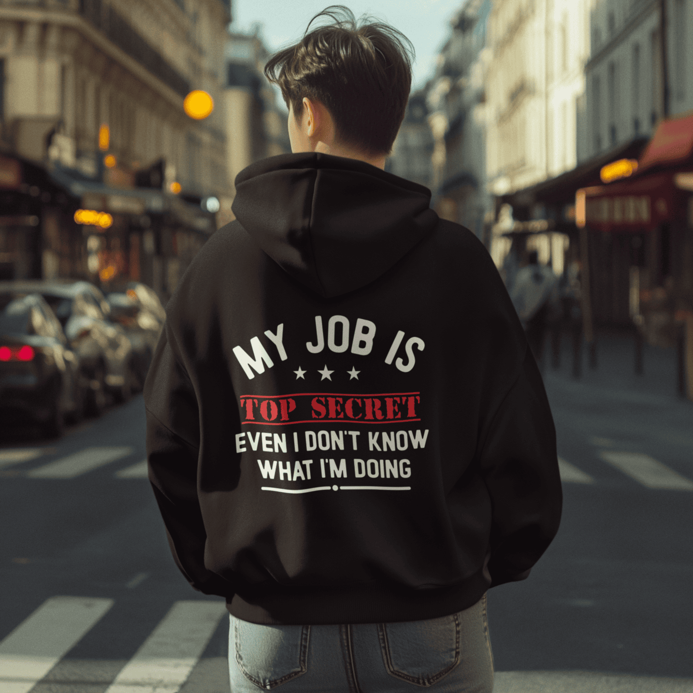 When the workload is classified and the plan unknown — this hoodie says it all! With bold typography and playful sarcasm, it’s the ultimate piece for anyone who loves to laugh through the workday.