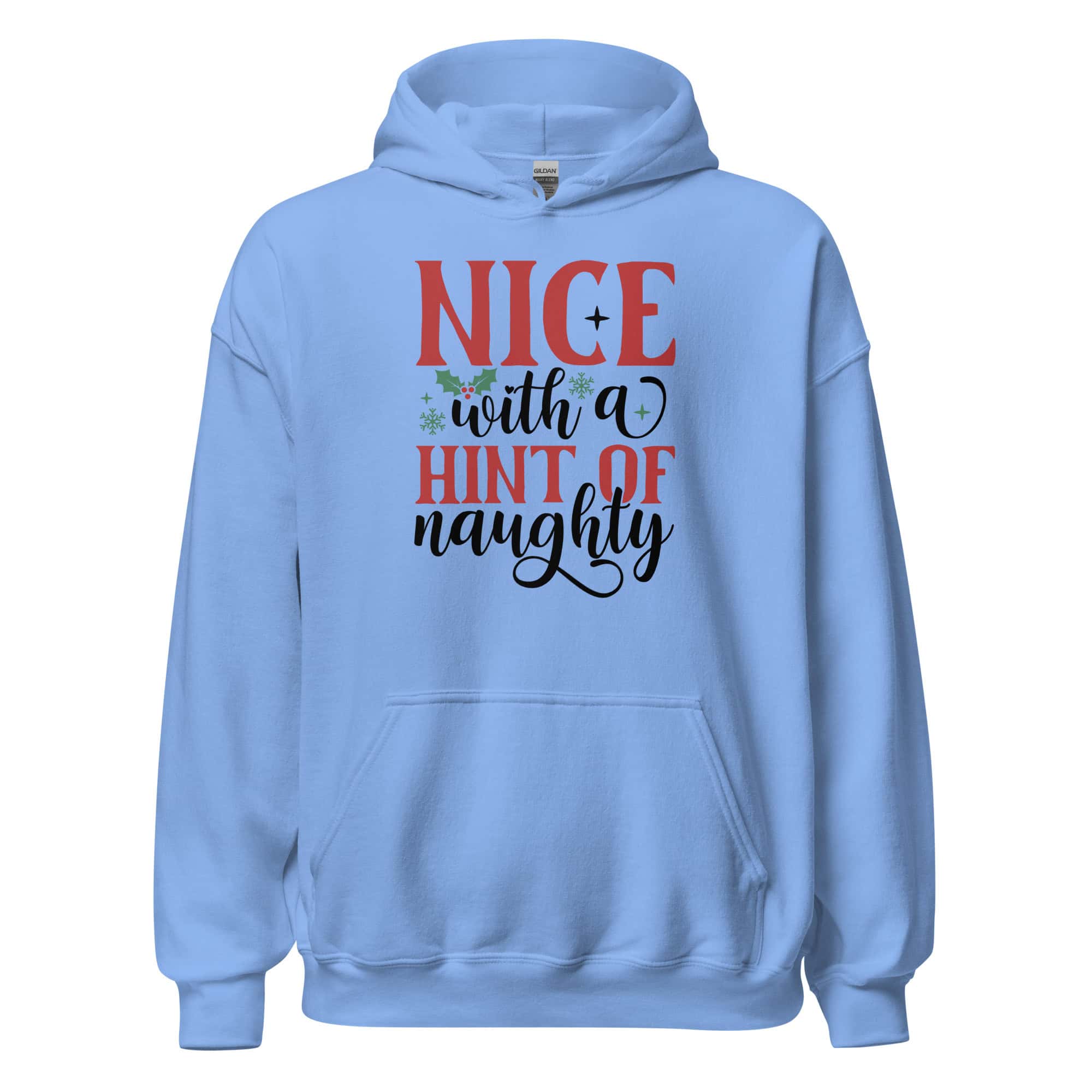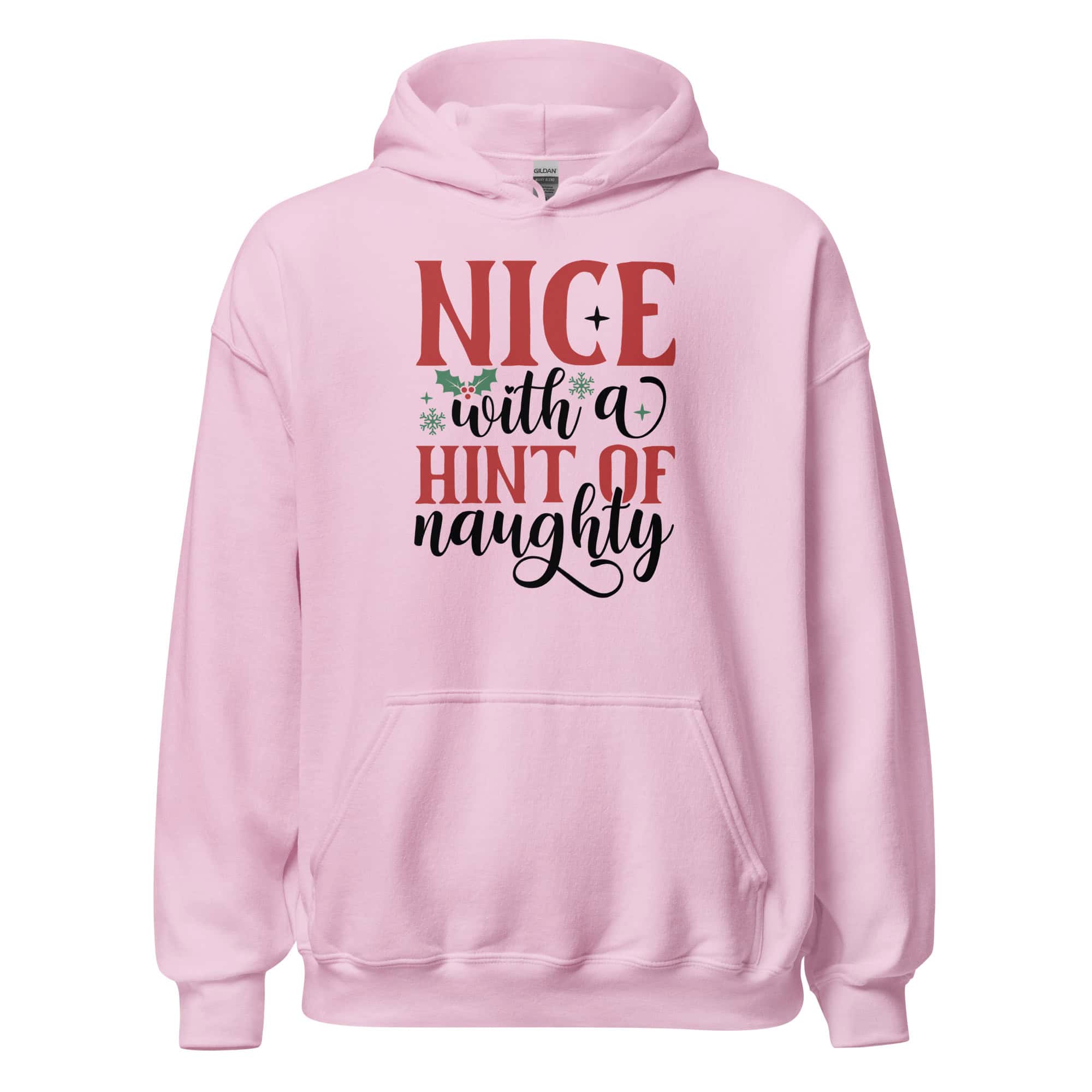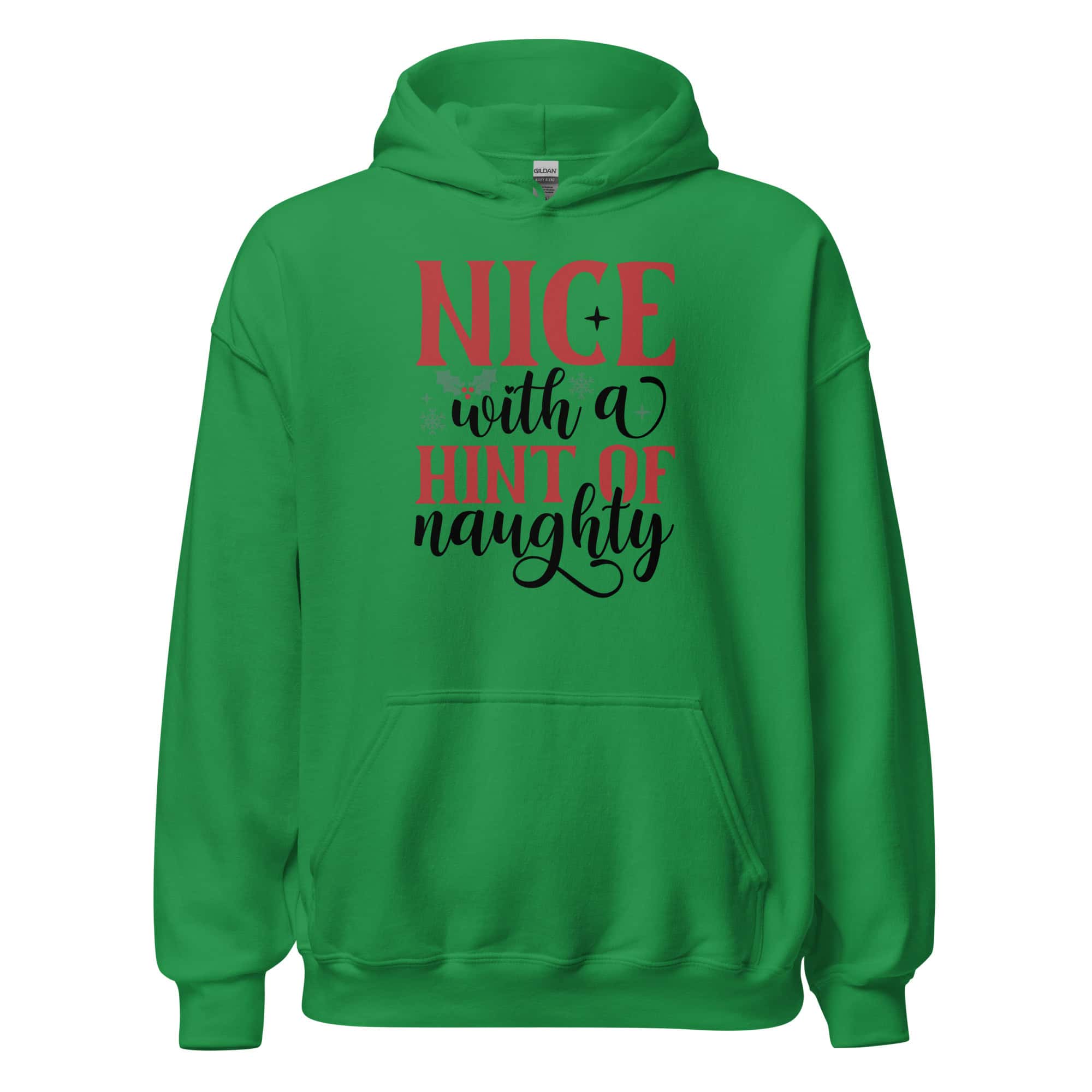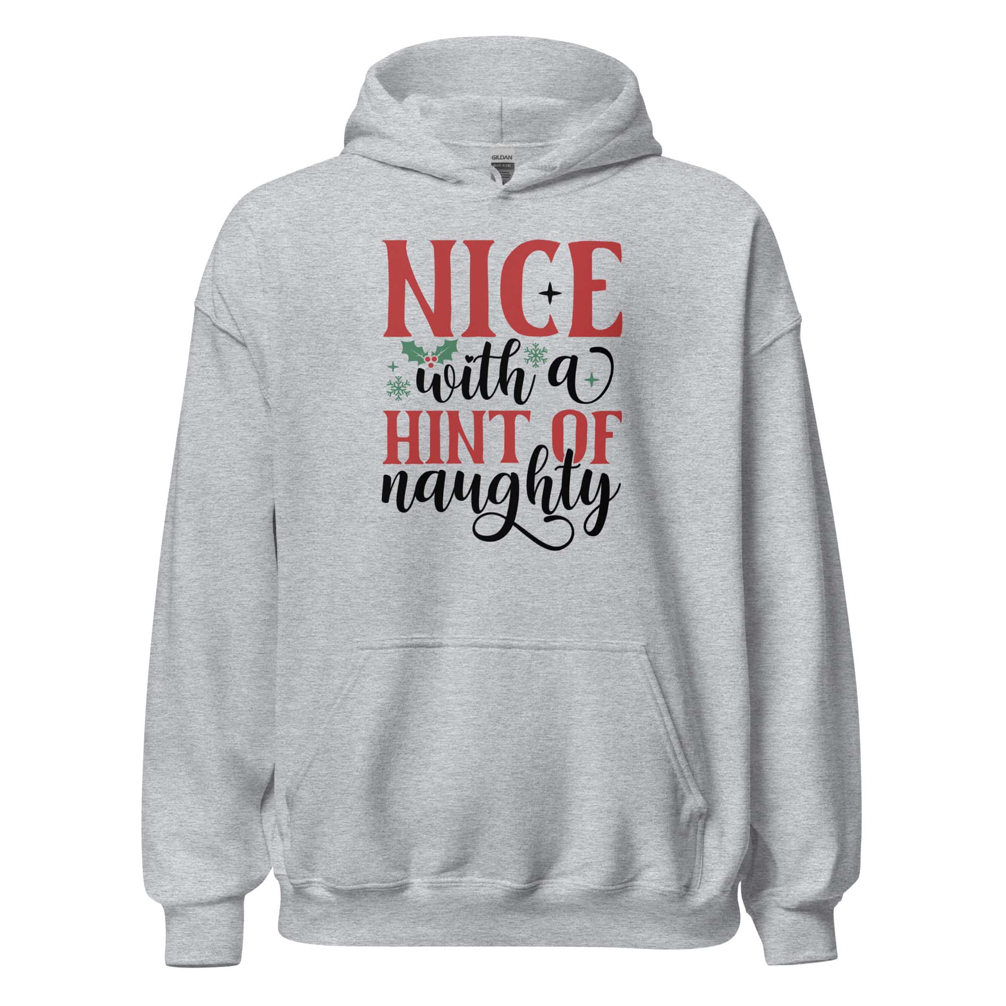 Show off your festive personality with this cozy unisex hoodie. Featuring the fun “Nice With a Hint of Naughty” design, it’s the perfect mix of holiday cheer and cheeky humor—ideal for gatherings, gifting, or staying warm all season long.