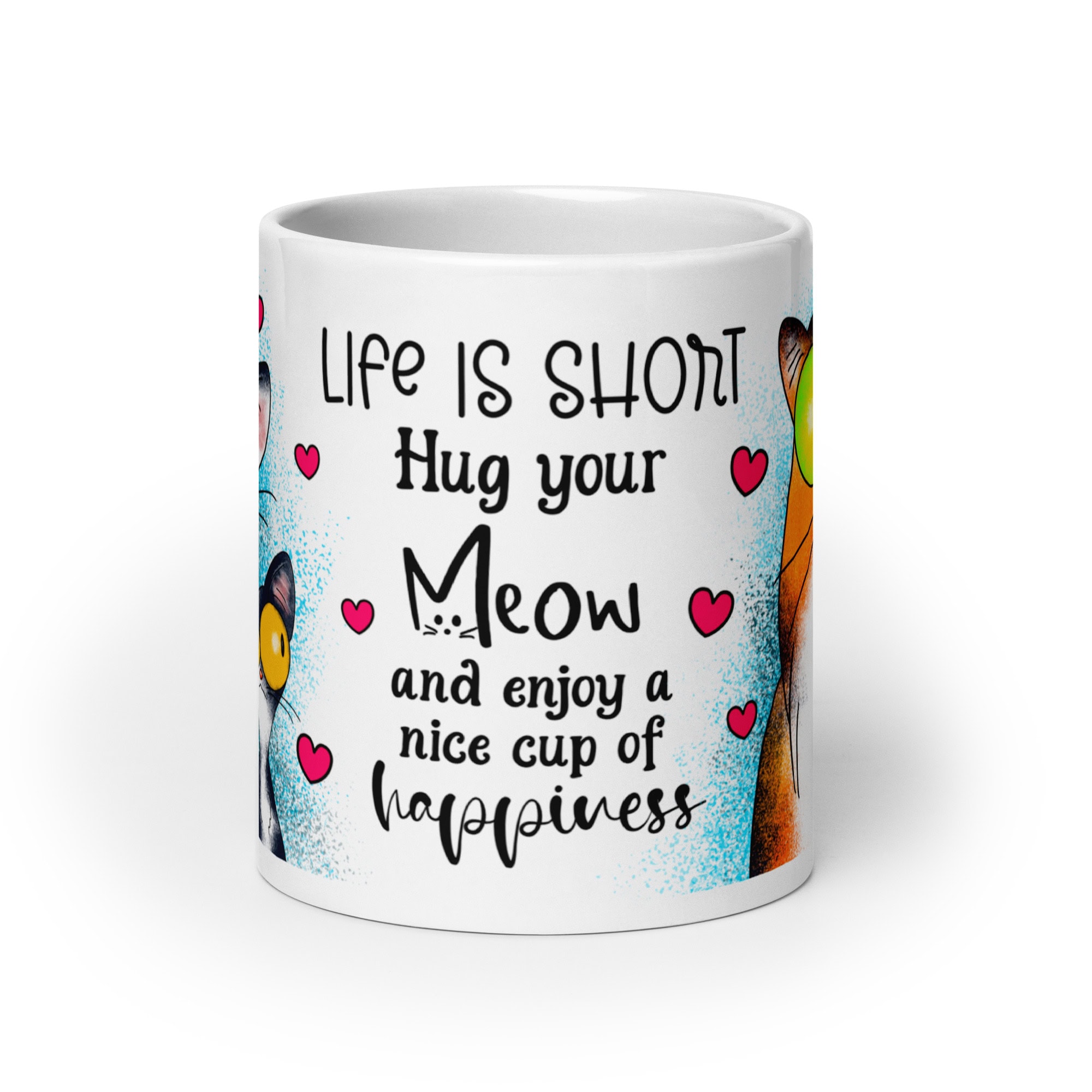 Every cat deserves a cuddle—and every cat lover deserves this mug! 😻 With two quirky felines and the cheerful message “Life is short, hug your meow,” this playful cup brings a daily dose of purr-sonality to your coffee or tea moments.