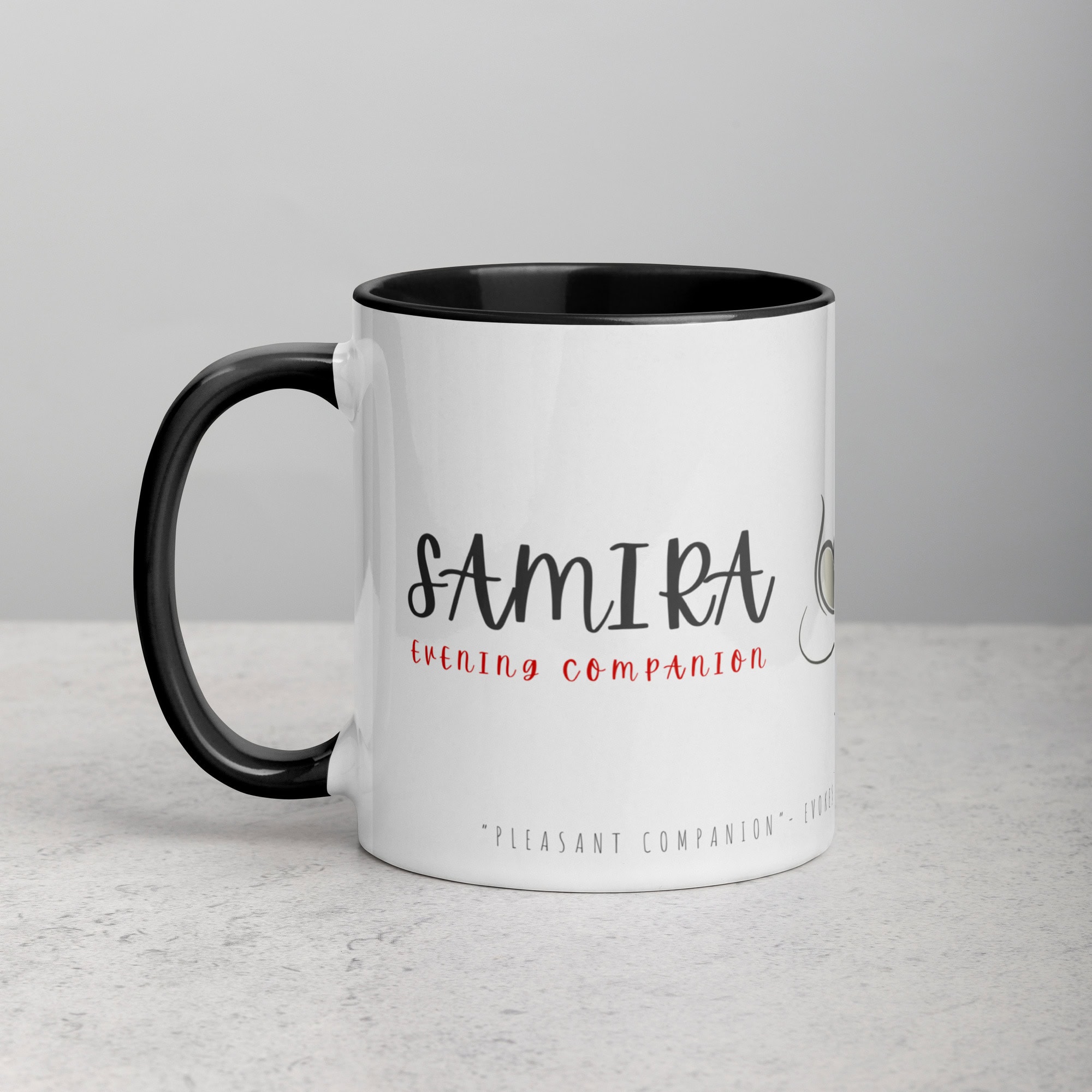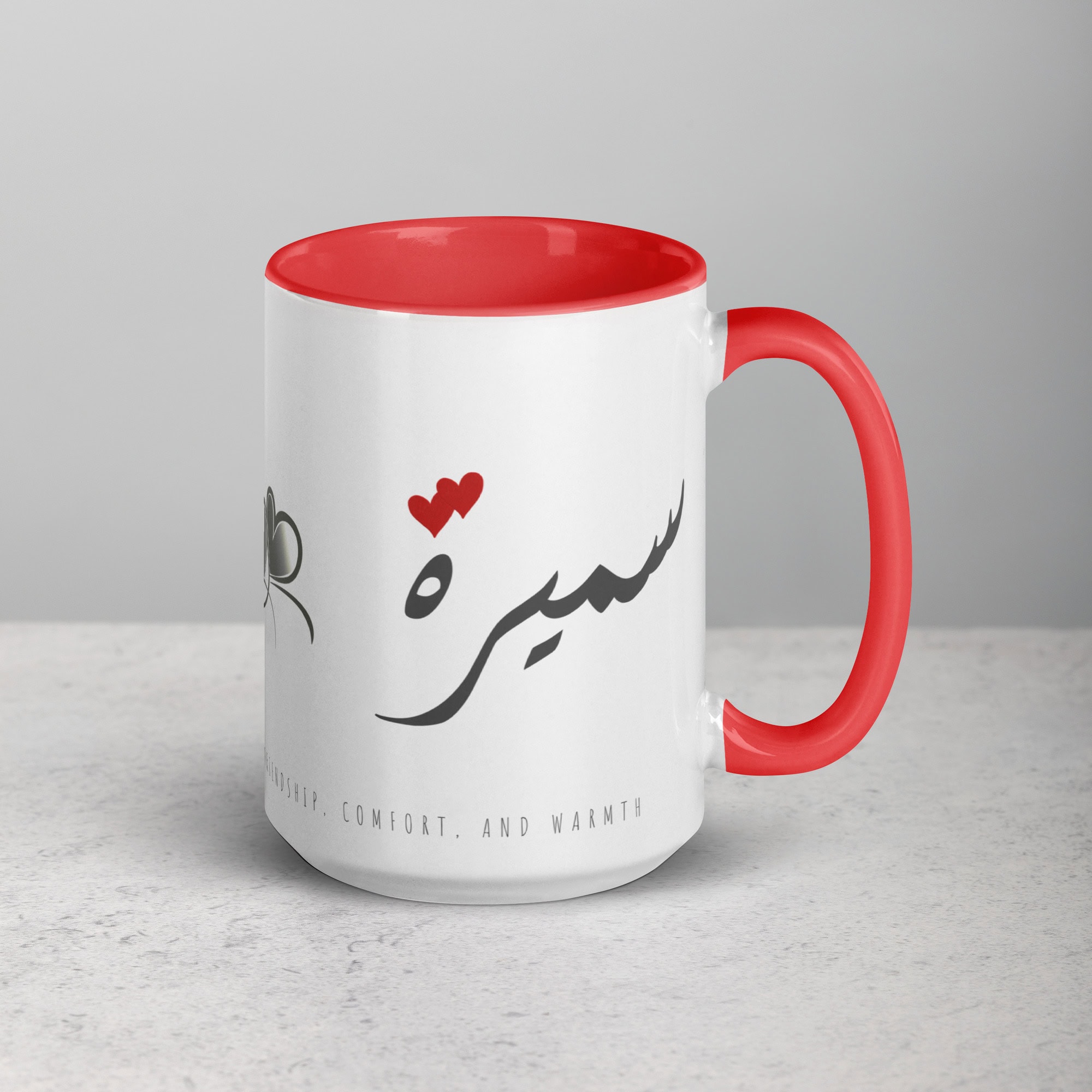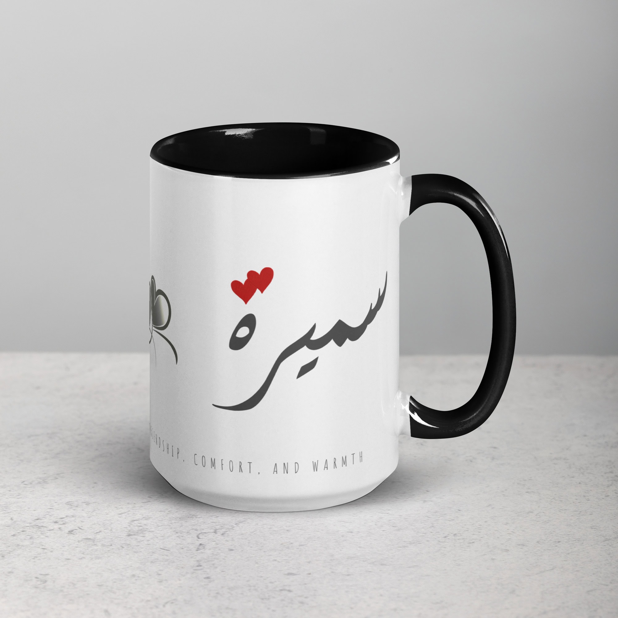 The Samira mug captures the warmth of companionship and comfort. Featuring Arabic calligraphy (ØŗŲ…ŲŠØąØŠ) and the English meaning “Evening Companion,” this elegant design symbolizes friendship, warmth, and gentle conversation — perfect for quiet nights and thoughtful mornings.