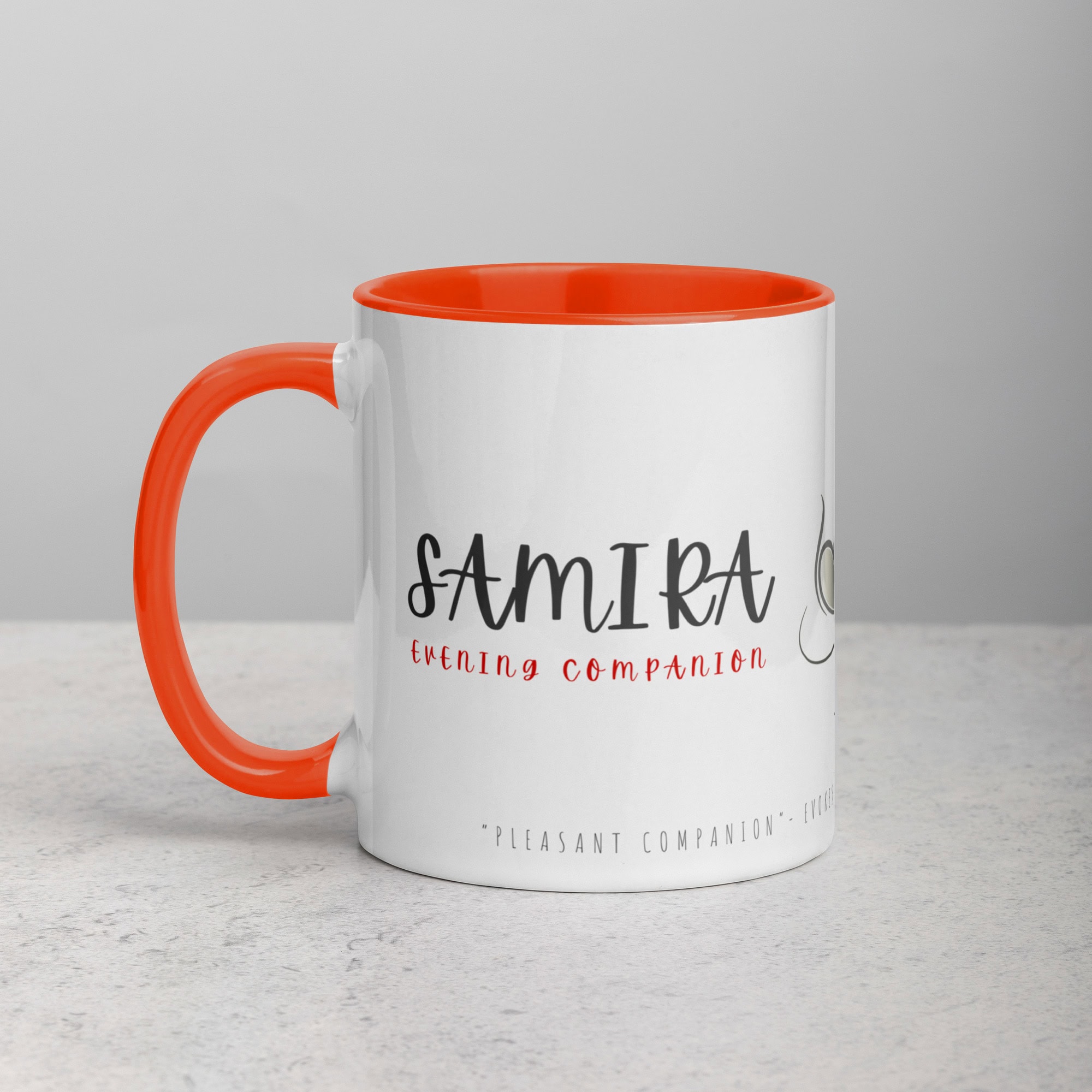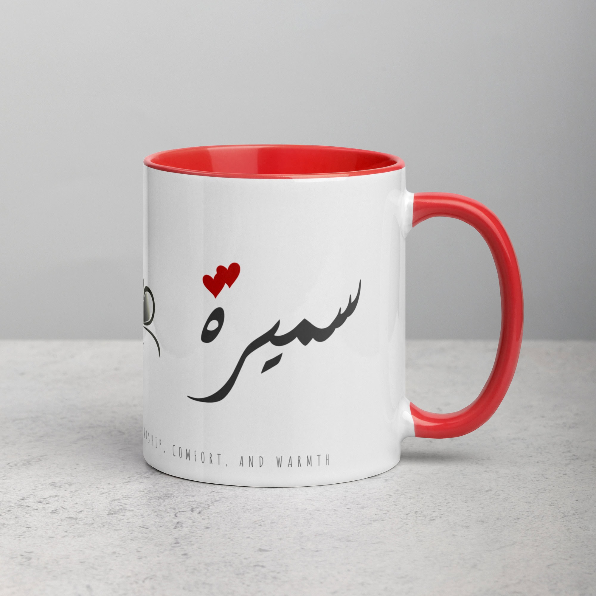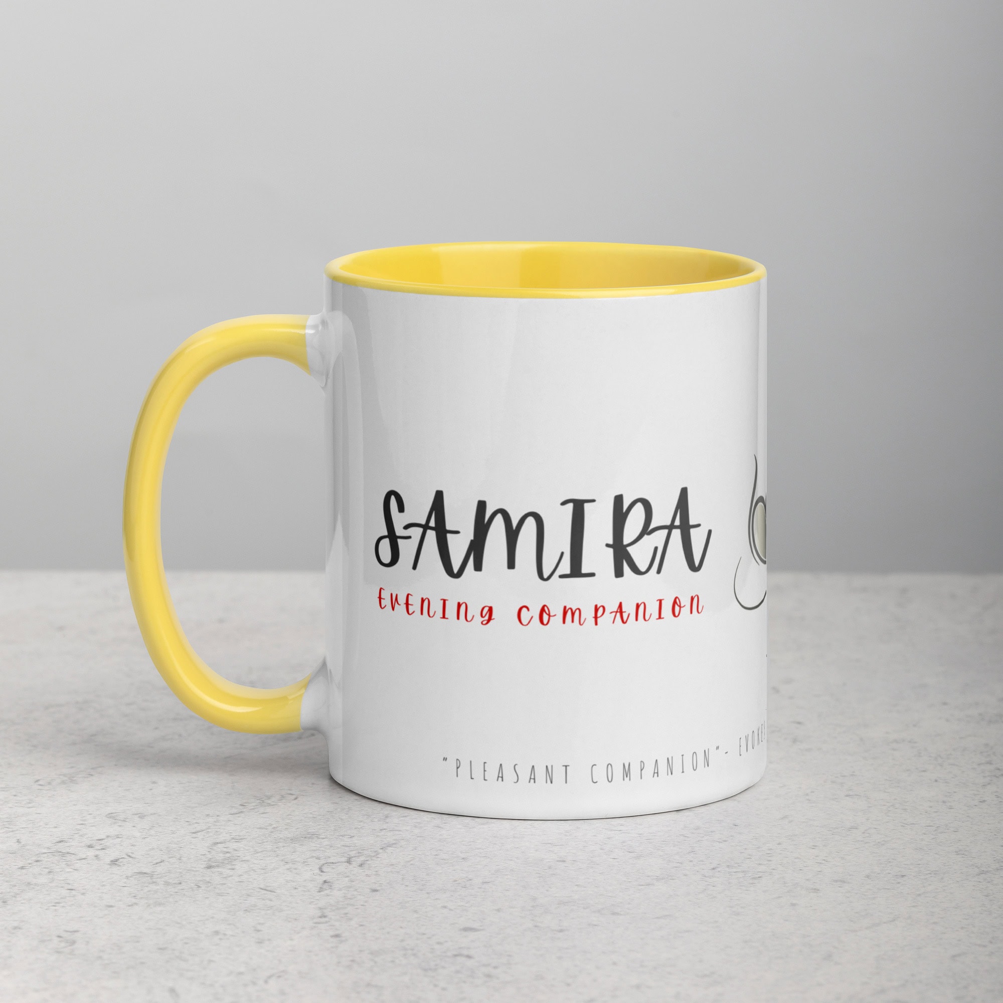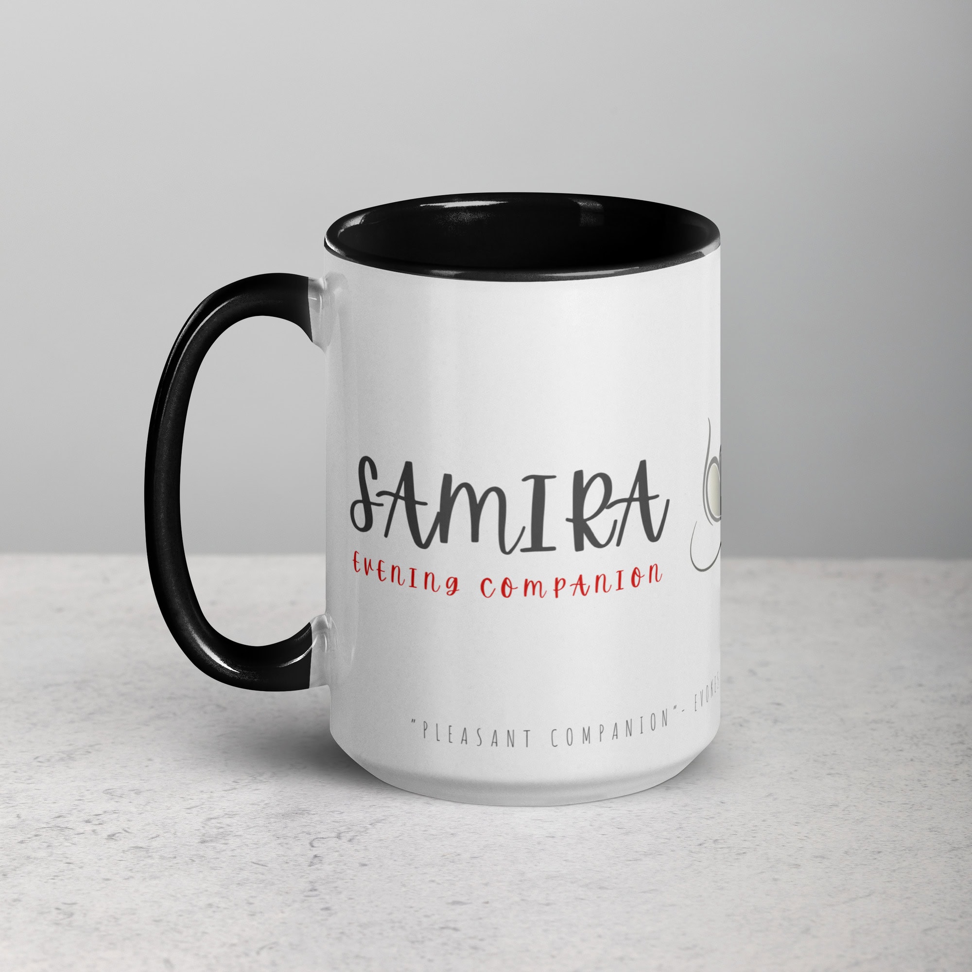 The Samira mug captures the warmth of companionship and comfort. Featuring Arabic calligraphy (ØŗŲ…ŲŠØąØŠ) and the English meaning “Evening Companion,” this elegant design symbolizes friendship, warmth, and gentle conversation — perfect for quiet nights and thoughtful mornings.