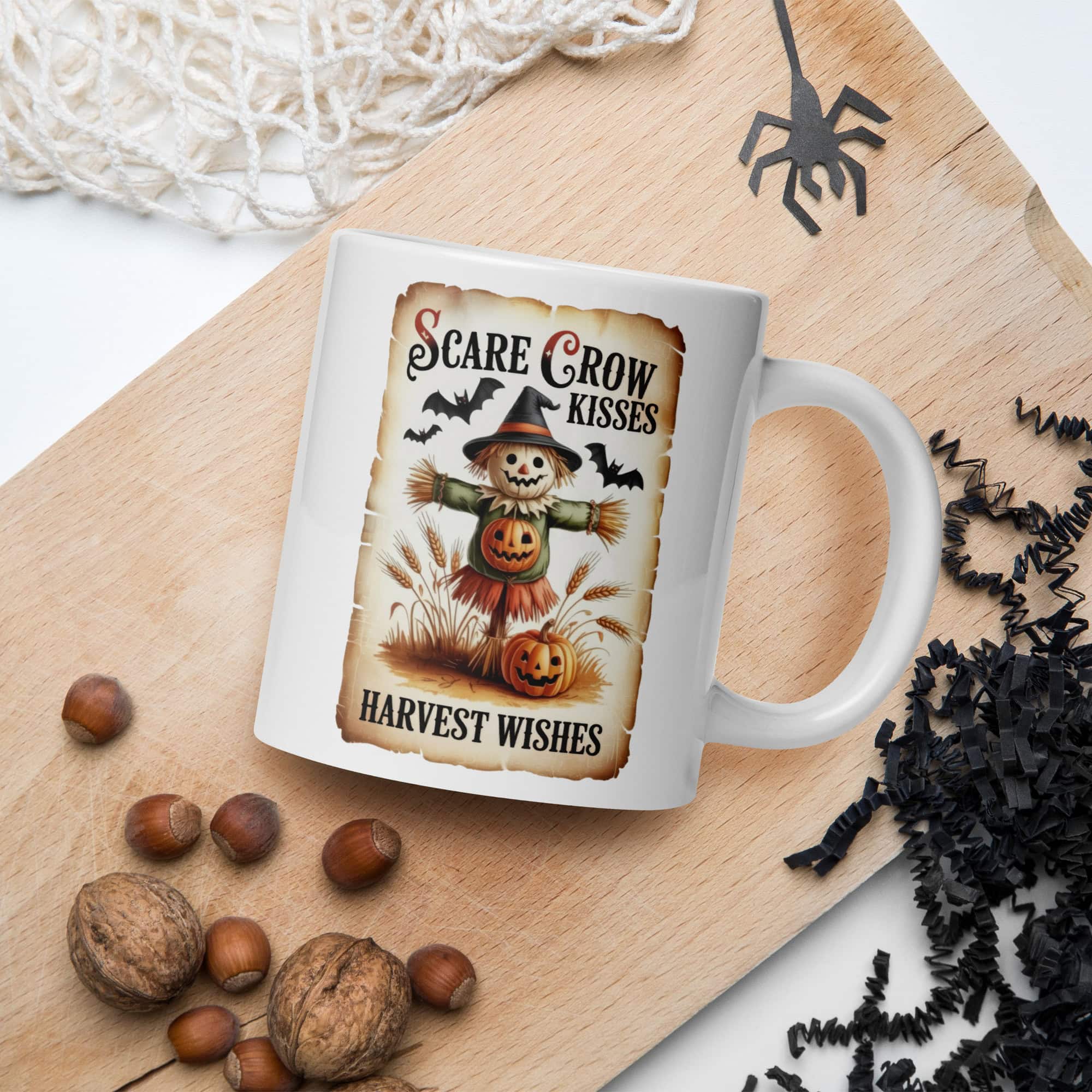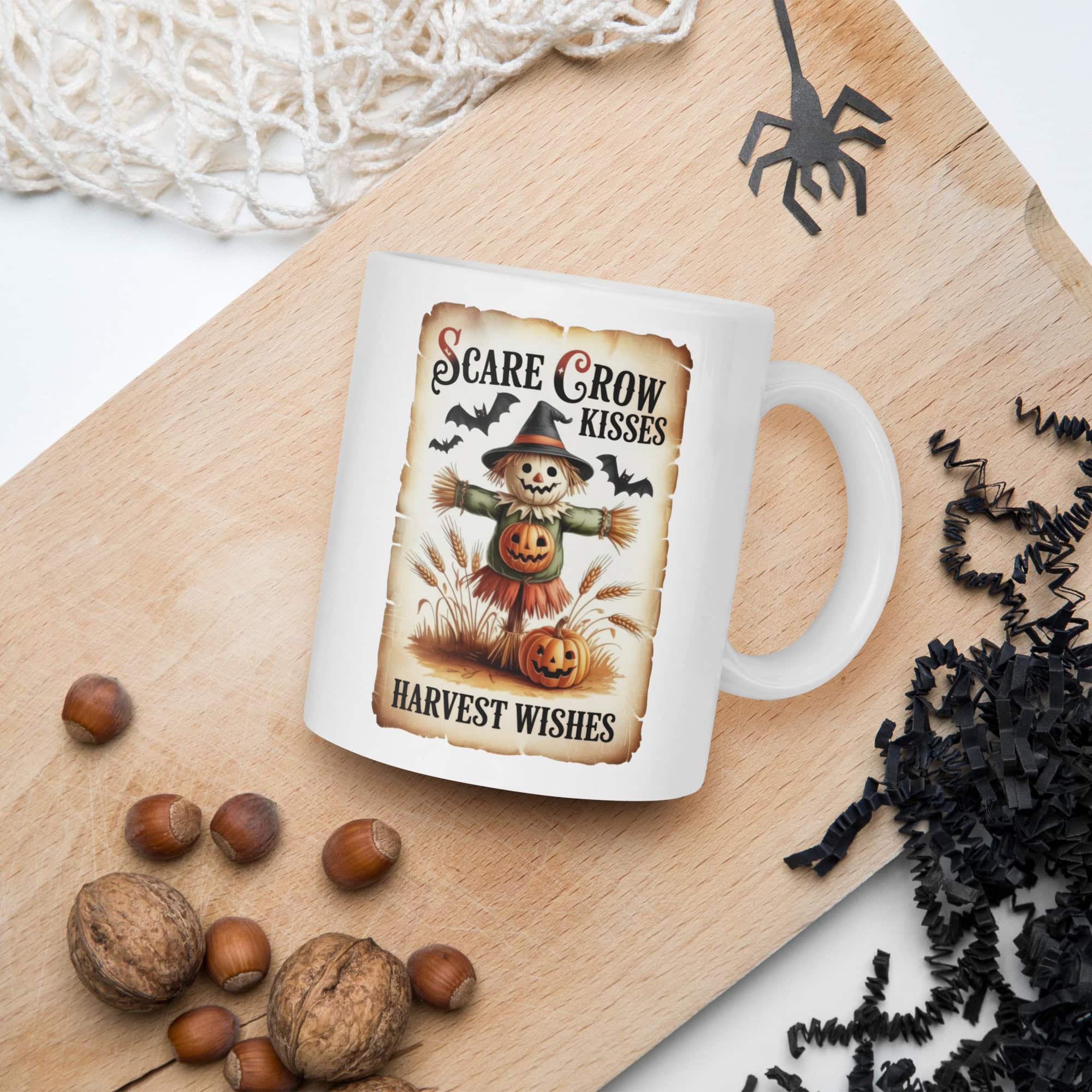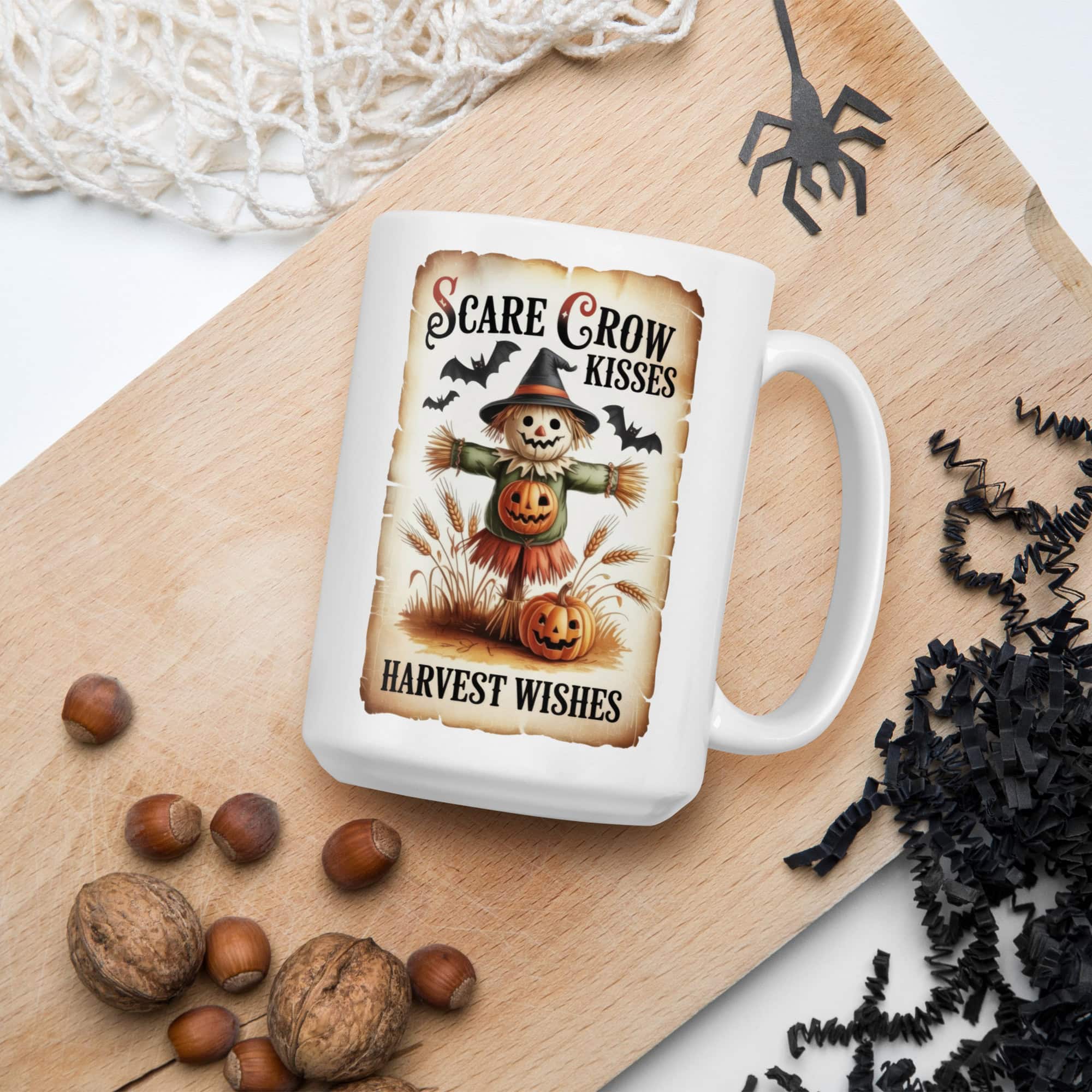 Celebrate the magic of autumn with our Scarecrow Kisses – Harvest Wishes Retro Mug, featuring a nostalgic Halloween-inspired design that captures the warmth of fall. Perfect for cozy mornings, this glossy ceramic mug is both microwave and dishwasher safe — blending classic charm with everyday convenience.
