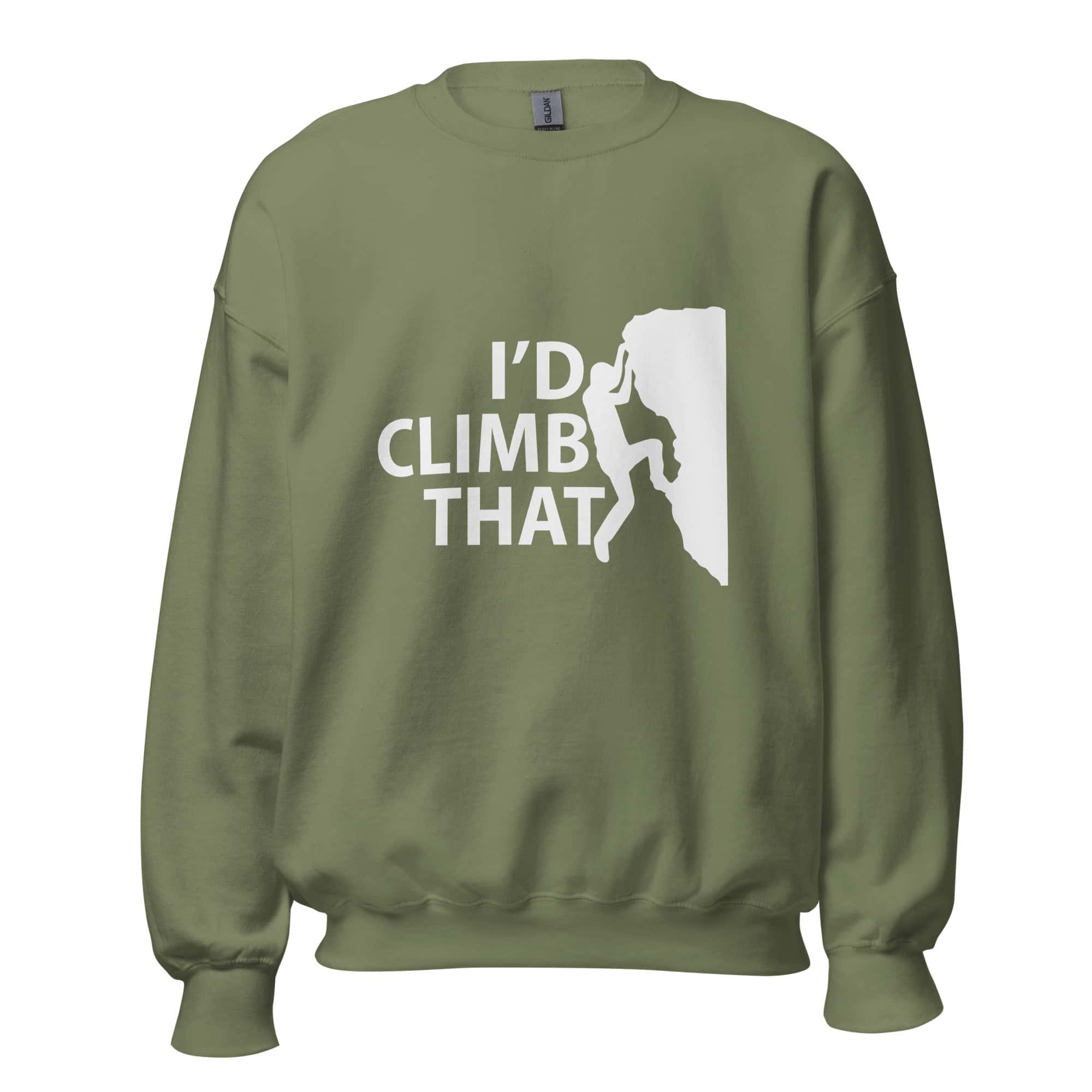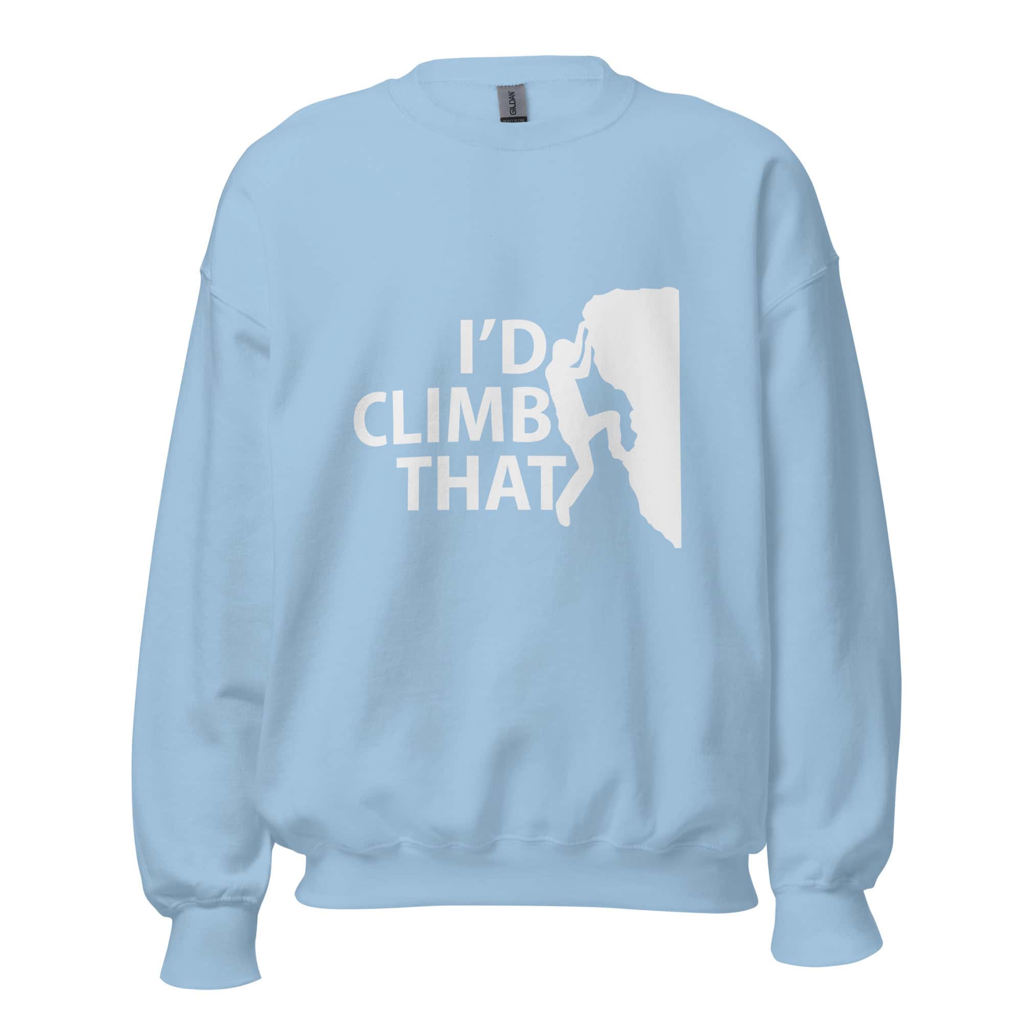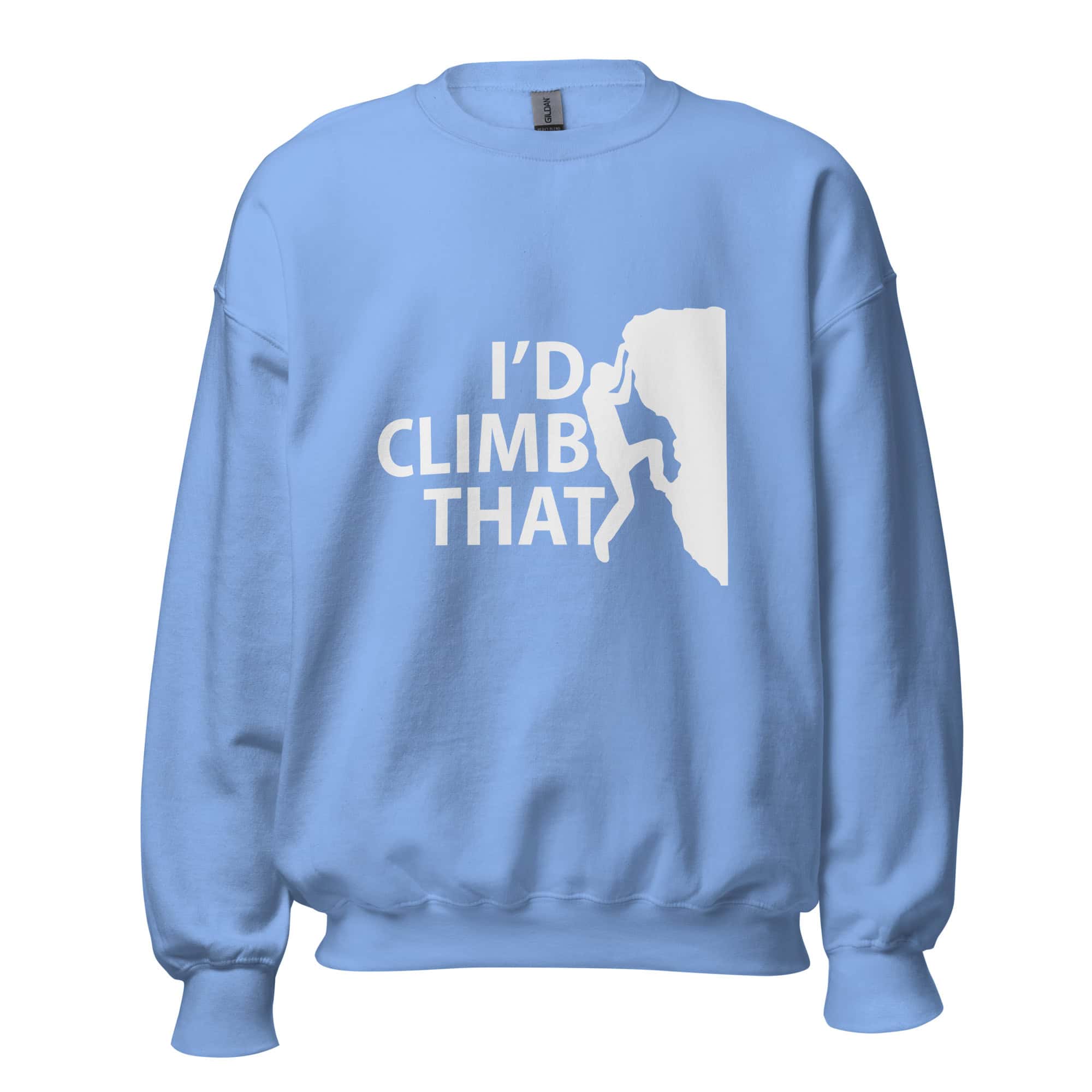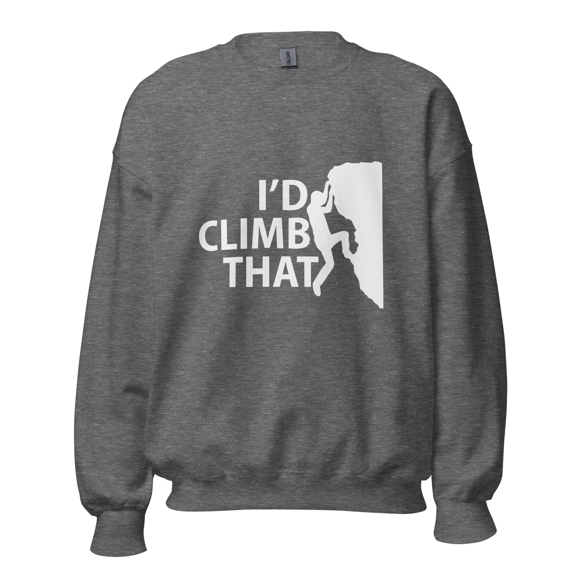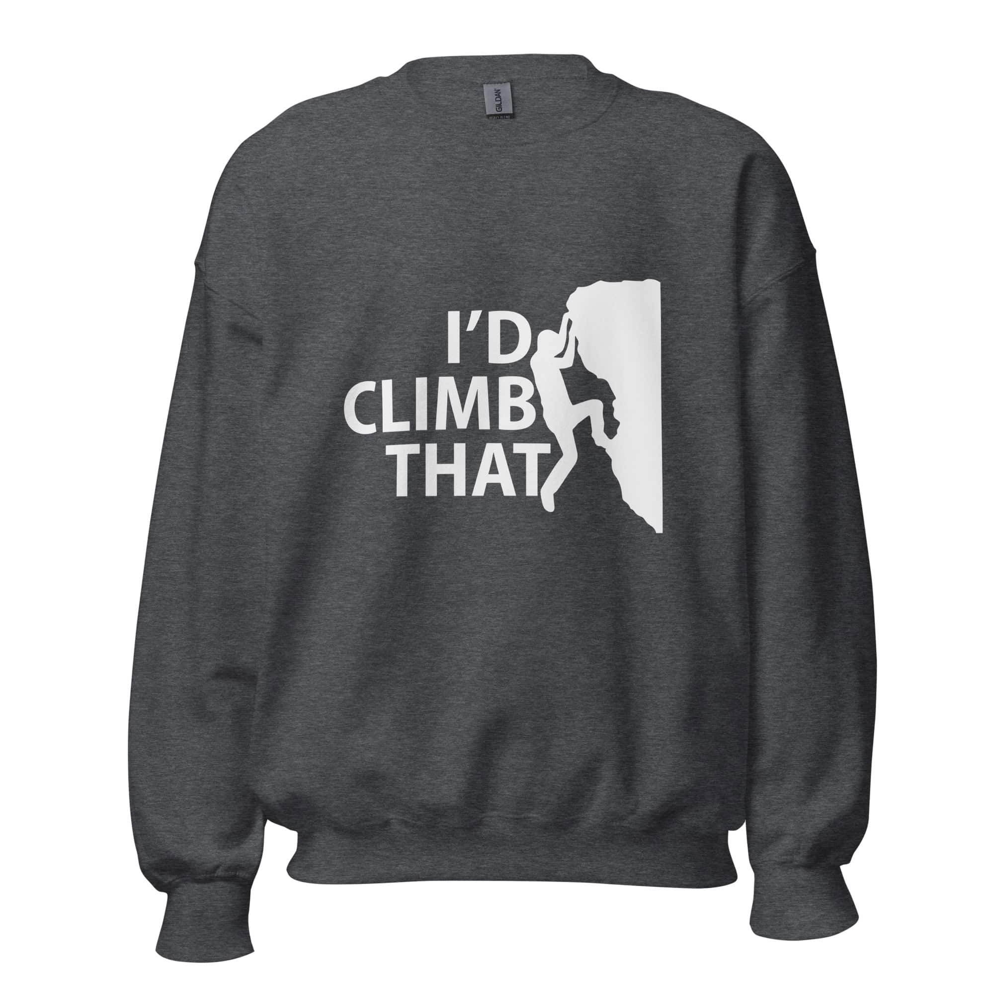 Show your climbing attitude with this “I’d Climb That” unisex sweatshirt — a fun and confident statement piece for rock climbers and outdoor lovers.
